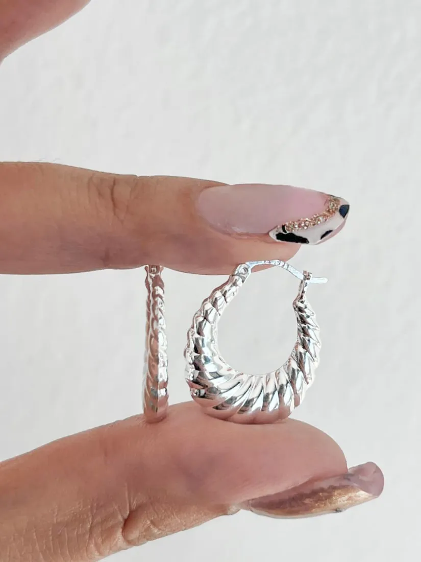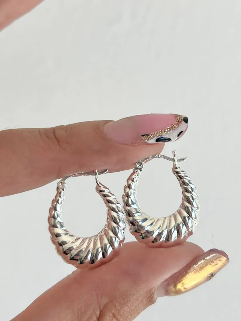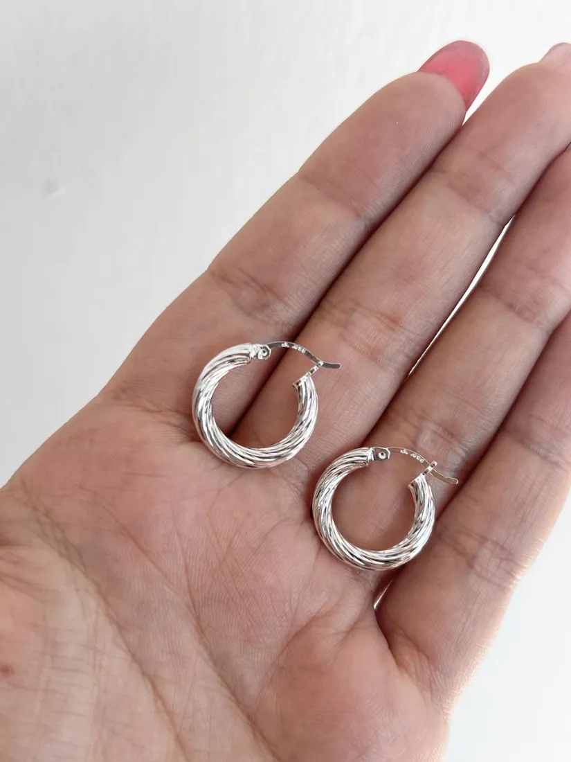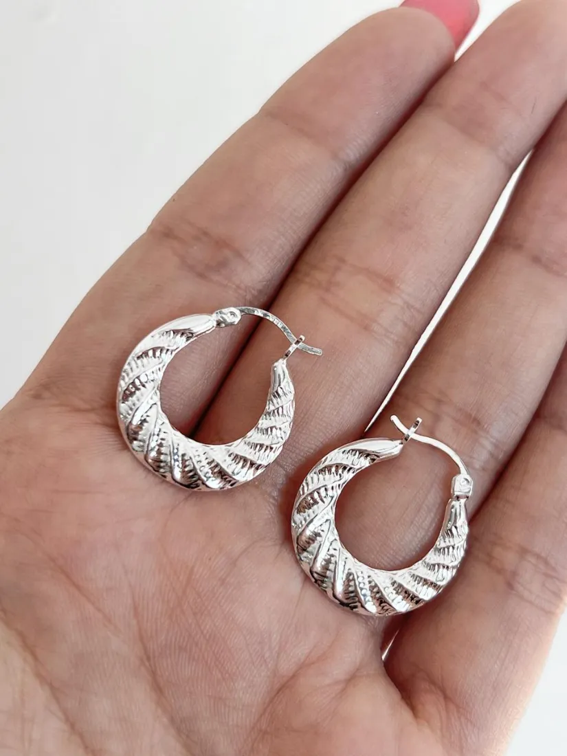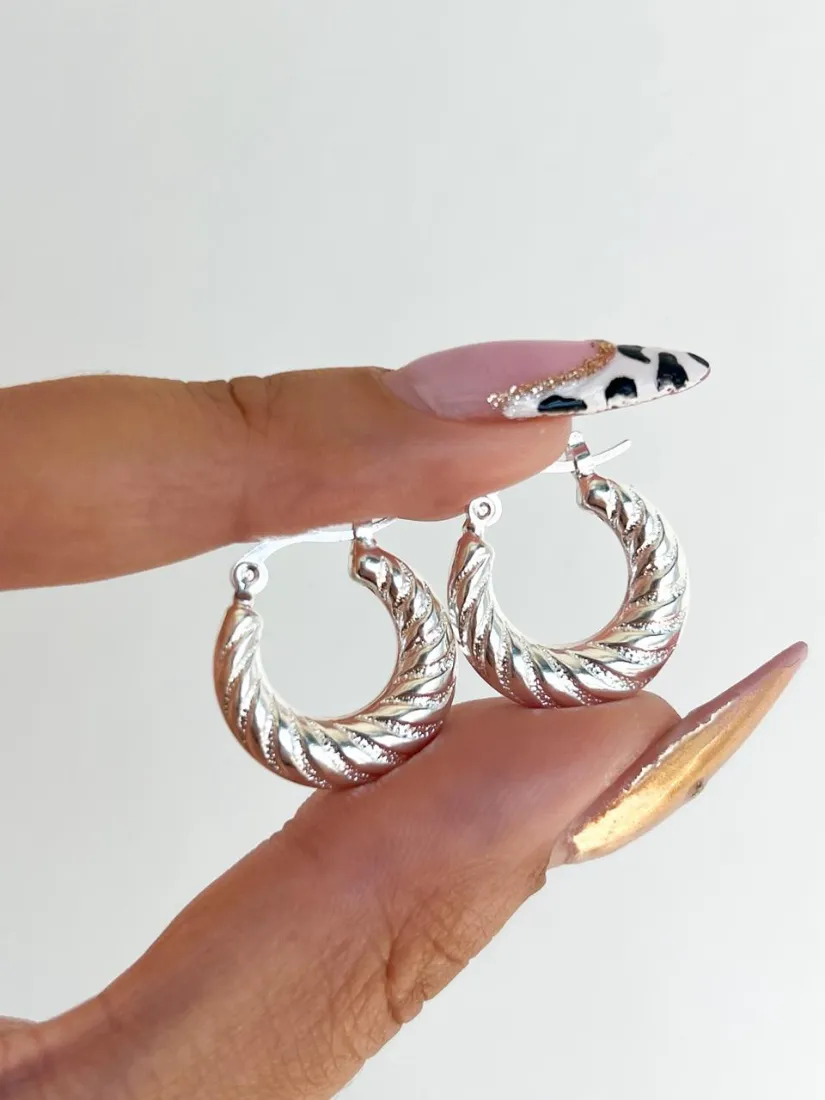AROS ARGOLLA TORSADA INFLADA PLATA 925 CIERRE ITALIANO MED 18MM