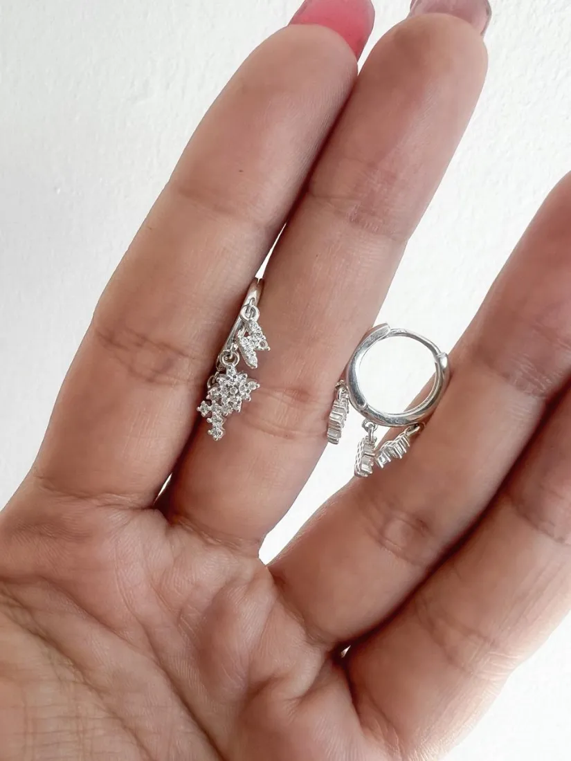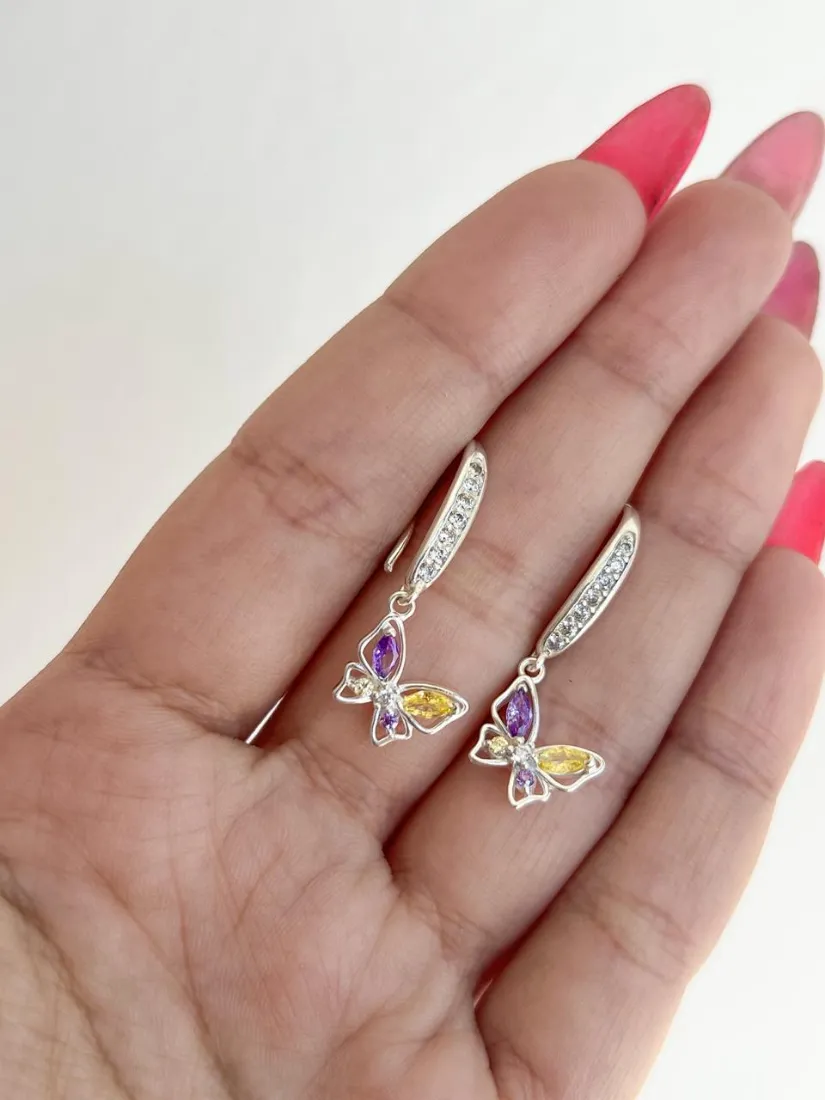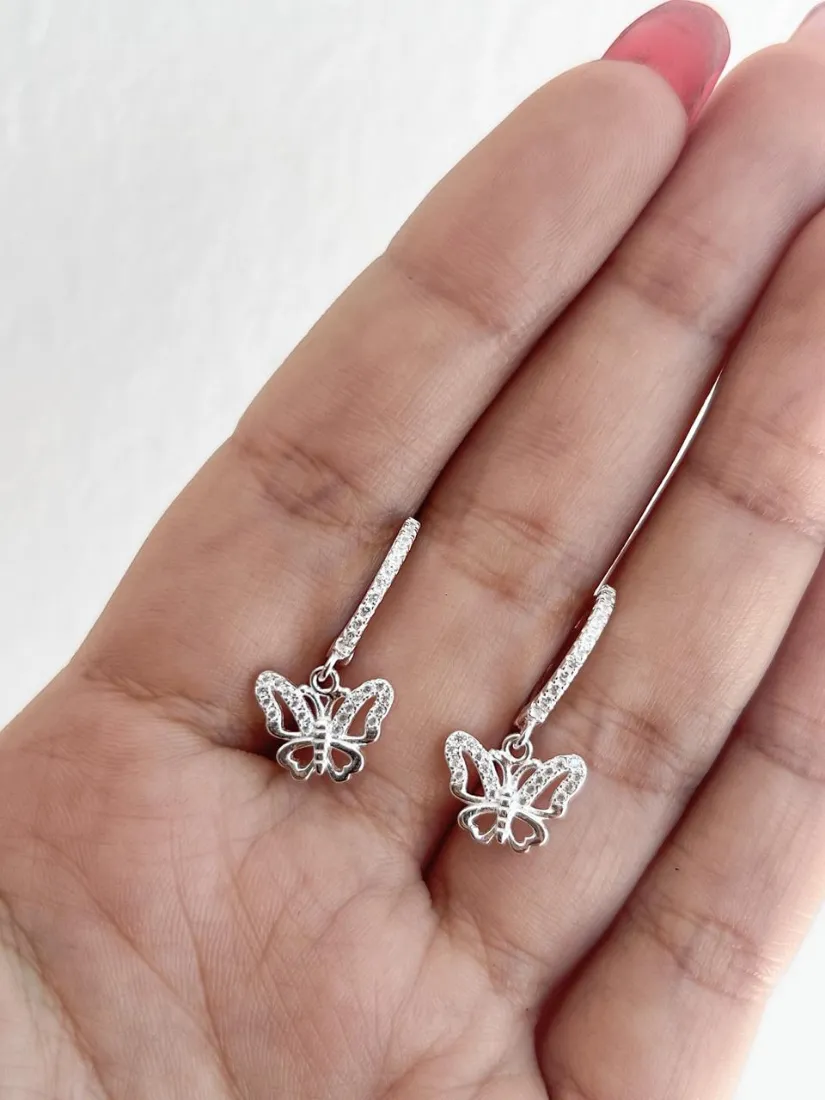 AROS CUBANITOS C/DIJE MARIPOSA C/MICROPAVE PLATA 925 MED 14MMAROS CUBANITOS
