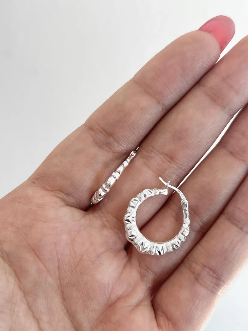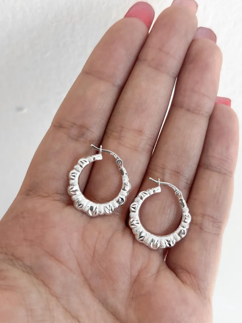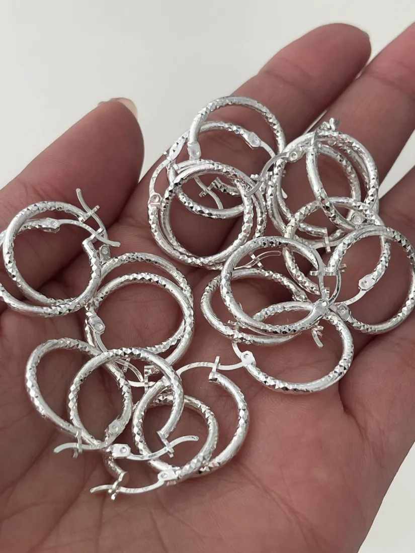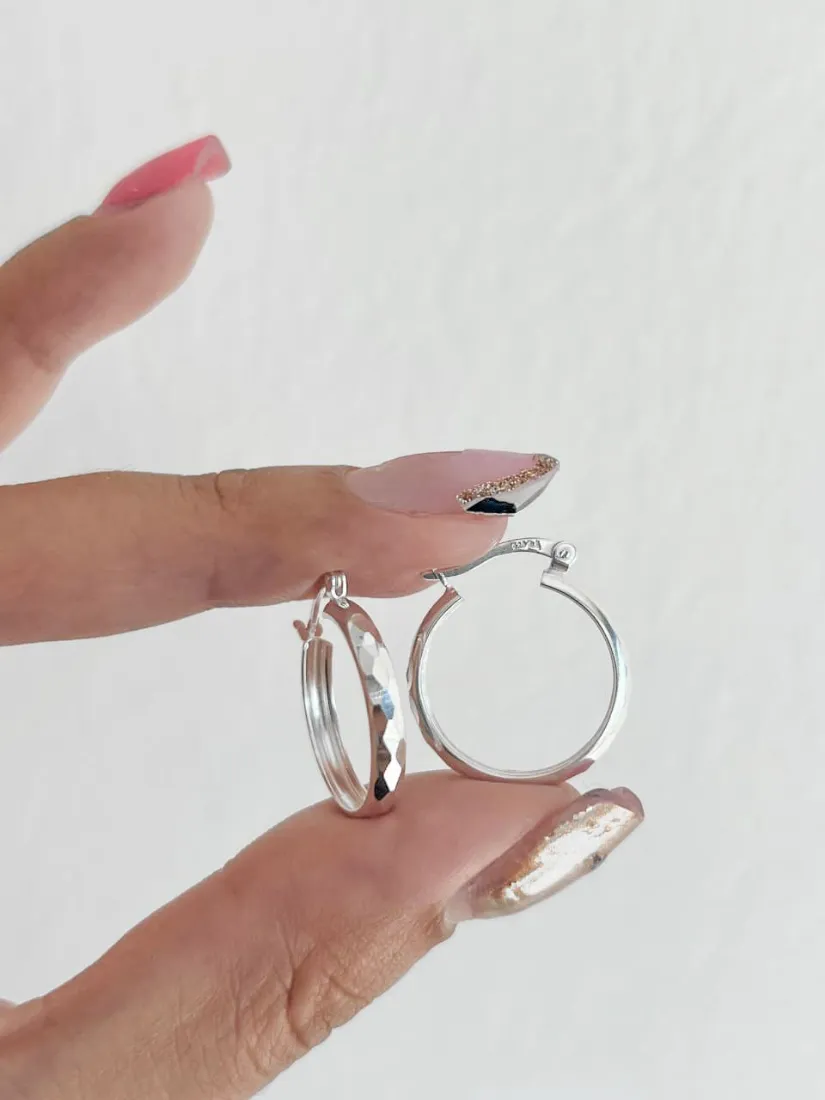 AROS ARGOLLA FACETADA CUBOS PLATA 925 C/CIERRE ITALIANO MED 20MM