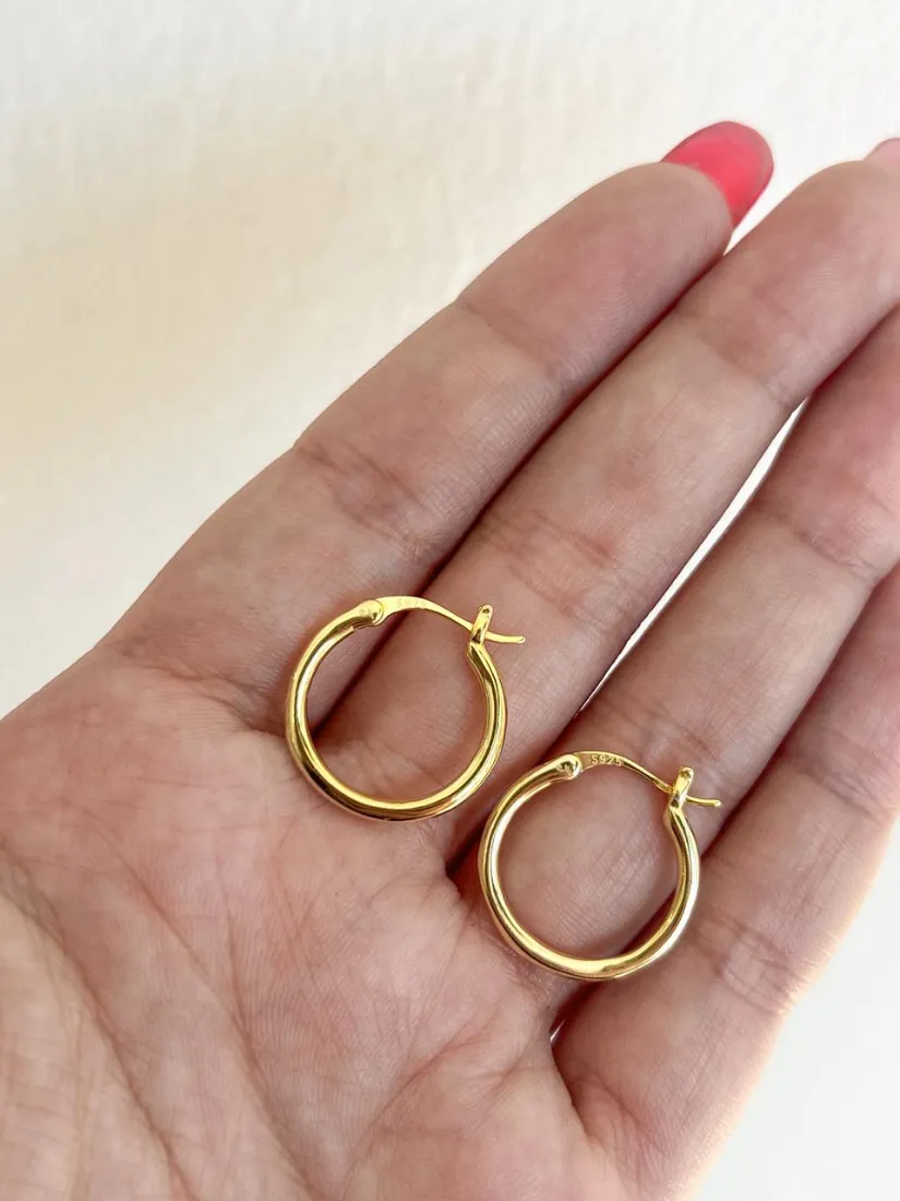 HUGGIES LISOS PLATA 925 GOLD MED 12MM