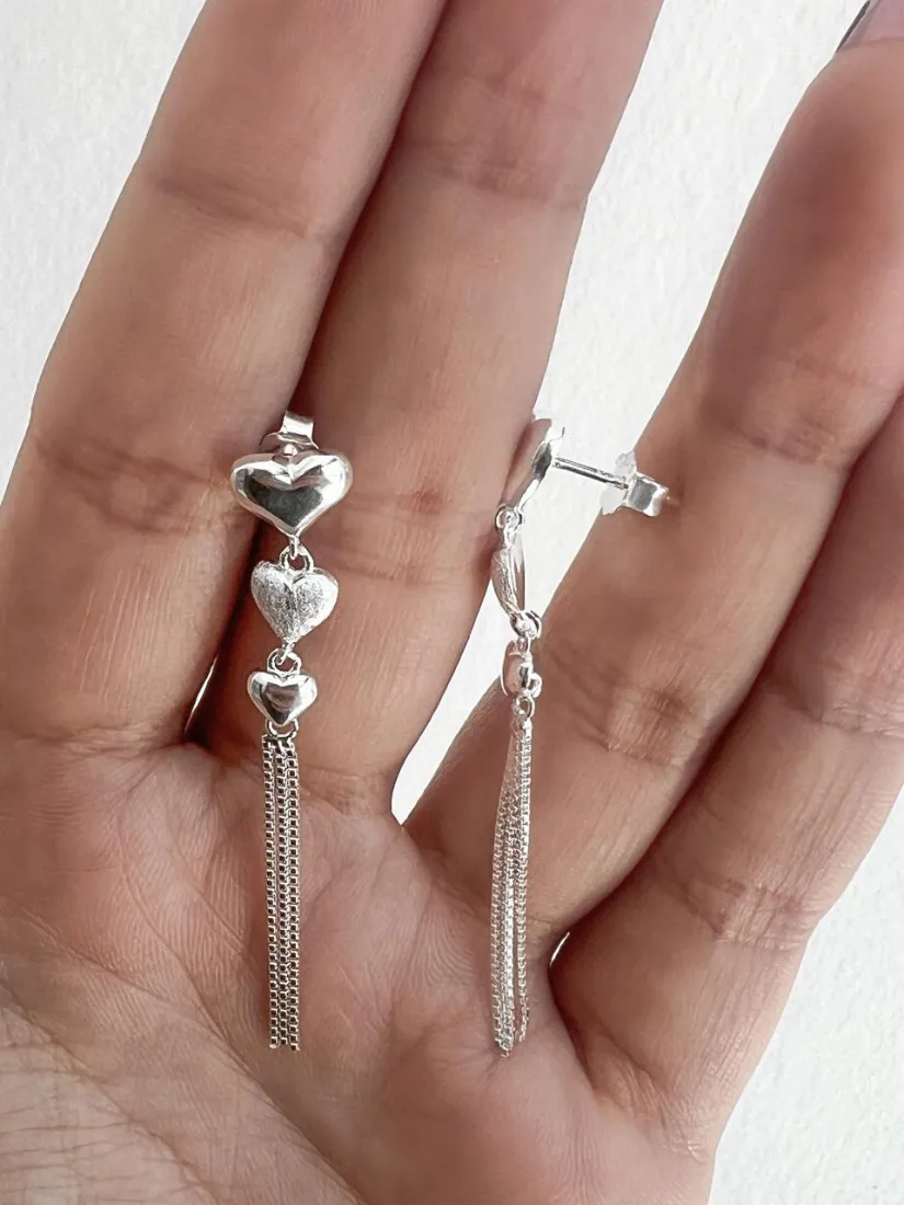 AROS PASANTES COLGANTES CORAZON LISO Y ARENADO PLATA 925