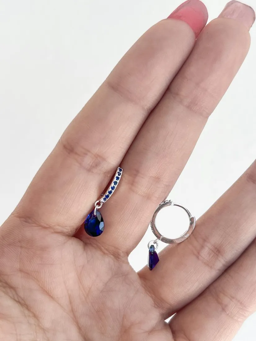 CUBANITOS C/DIJE GOTA AZUL PLATA 925 MED 12MM