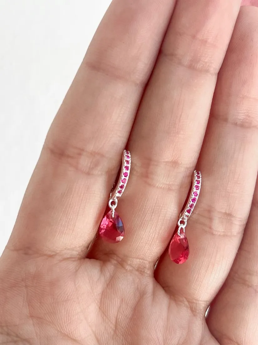 CUBANITOS C/DIJE GOTA ROSA PLATA 925 MED 12MM