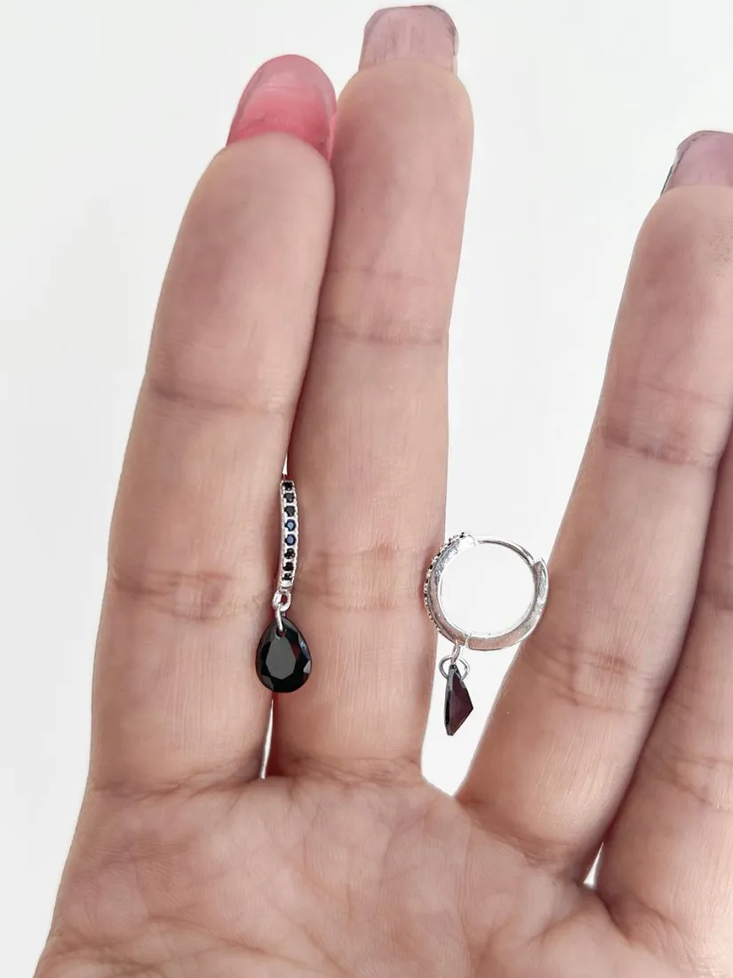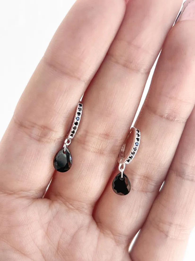 CUBANITOS C/DIJE GOTA NEGRA PLATA 925 MED 12MM