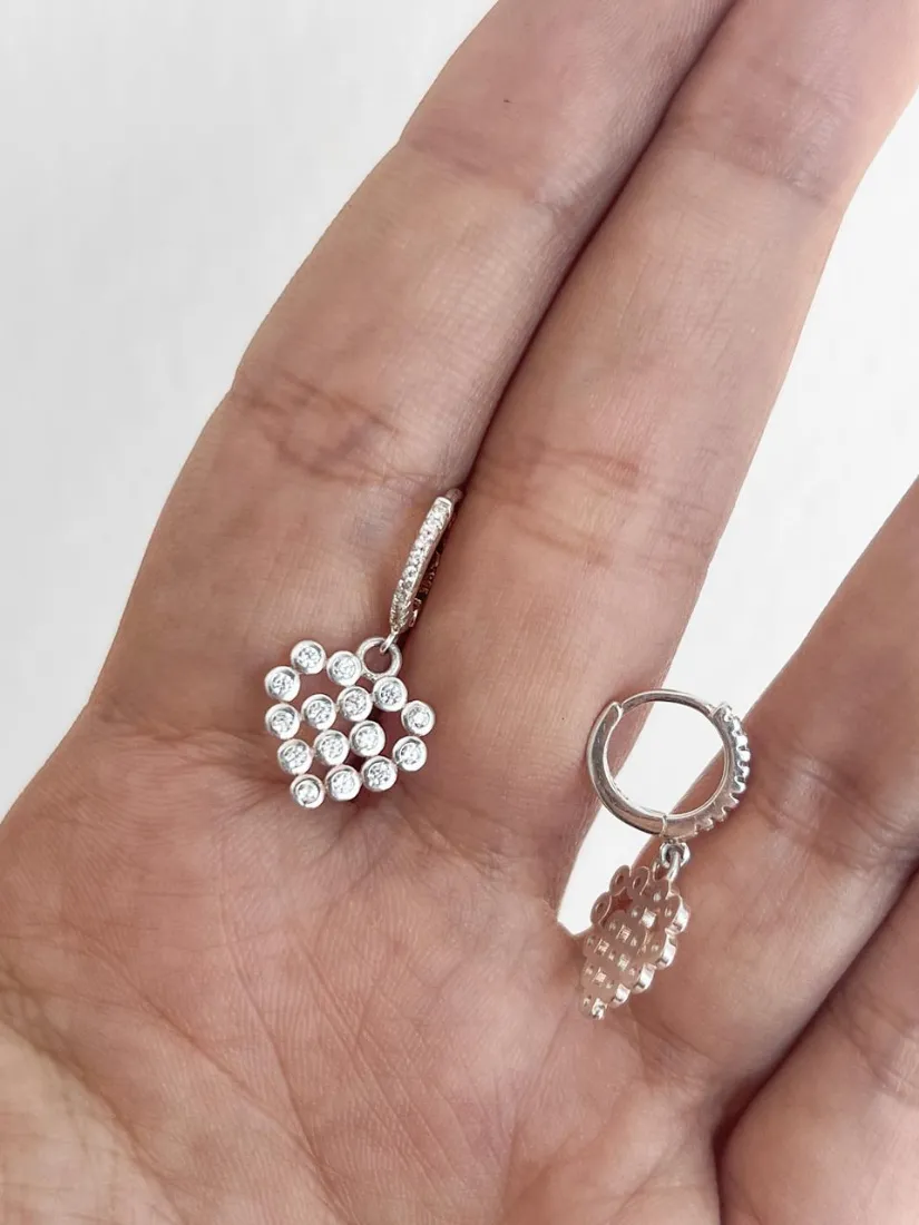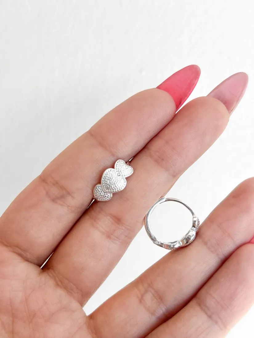 AROS CUBANOS CORAZON C/PUNTITOS PLATA 925