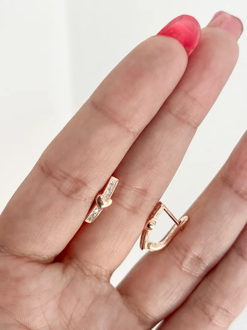 HUGGIES C/ZIRCON Y DIJE CORAZON PLATA 925 ROSE MED10MM