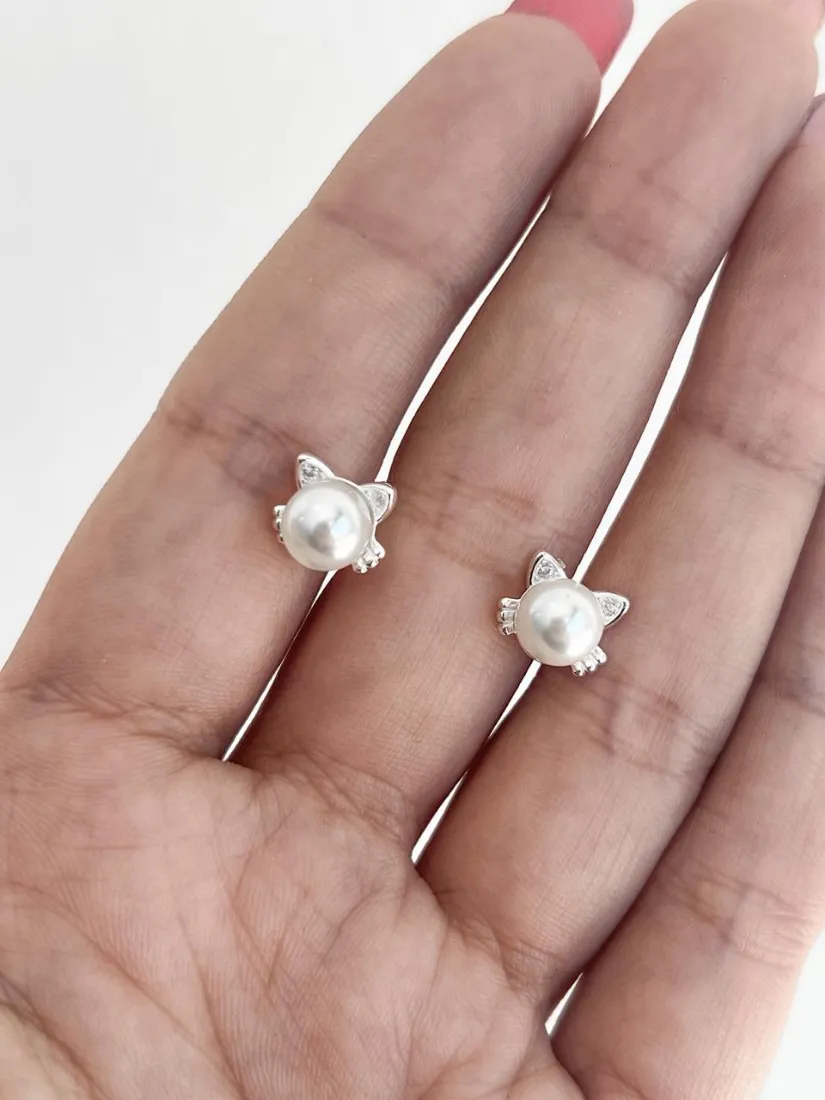 AROS PASANTE GATITO C/ PERLA DE CULTIVO PLATA 925