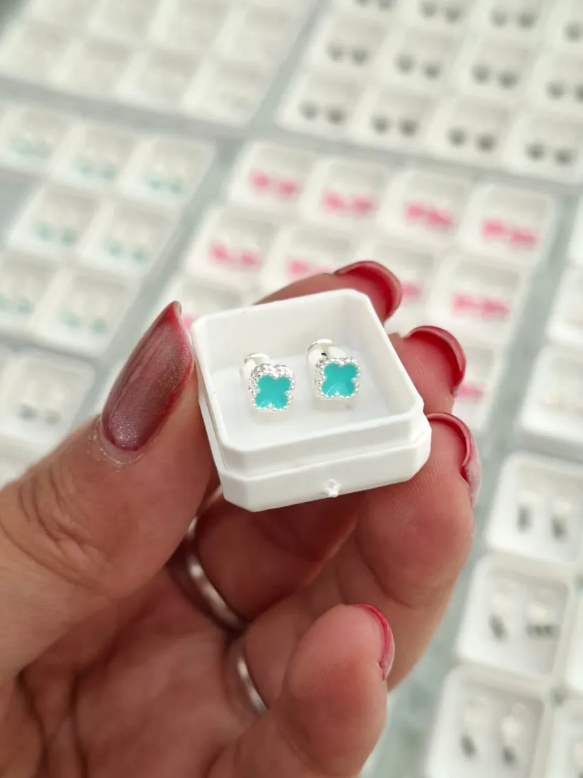 ABRIDORES TREBOL VERDE PLATA 925