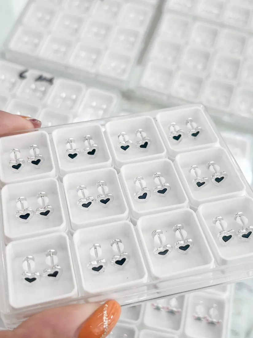 ABRIDORES CORAZON GRANDE ZIRCON NEGRO PLATA 925