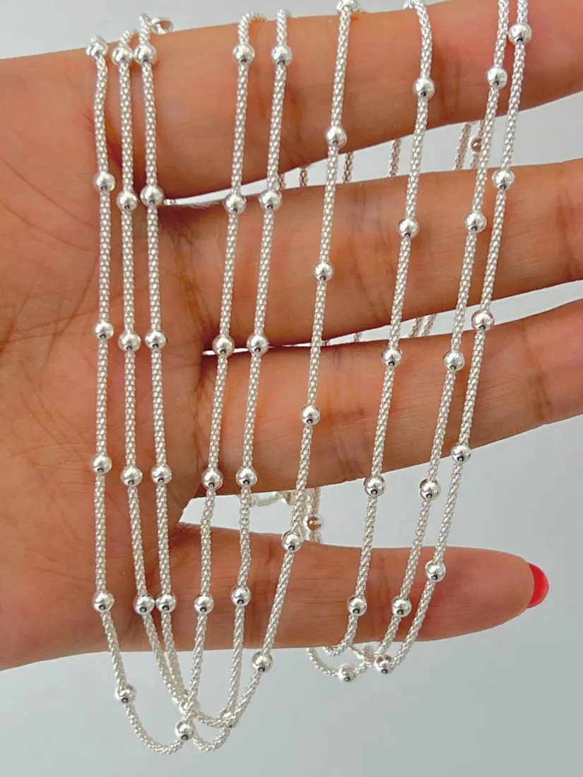 CADENA POPCROM C/BOLITAS PLATA 925 DE 50CM