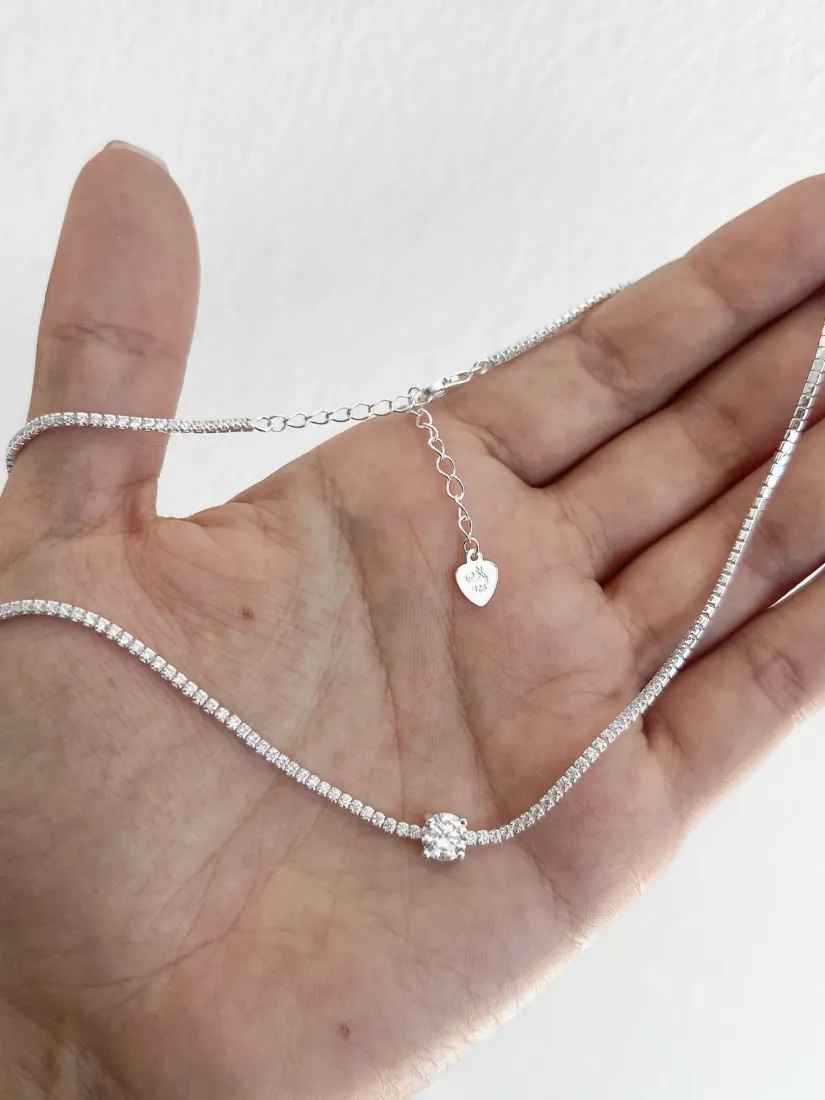 CHOKER PUNTO C/ZIRCON CUADRADO PLATA 925 MED 35+5
