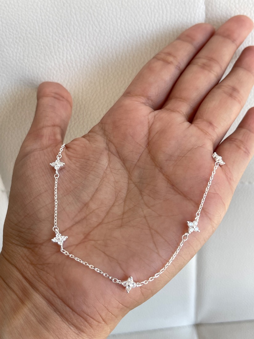 CHOKER FLORES C/ MICROPAVE PLATA 925 ITALY MED 35+5
