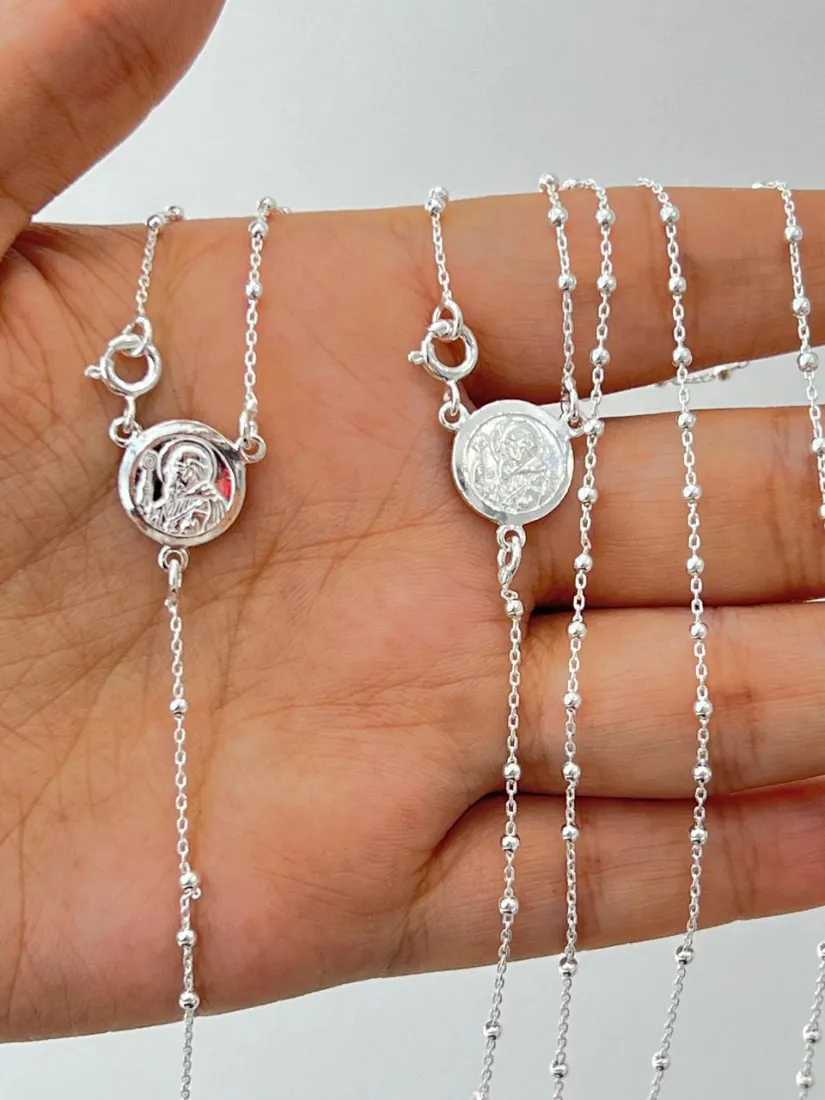 ROSARIO DE SAN BENITO C/BOLITAS DE 2 MM MEDIDA 45CM PLATA 925