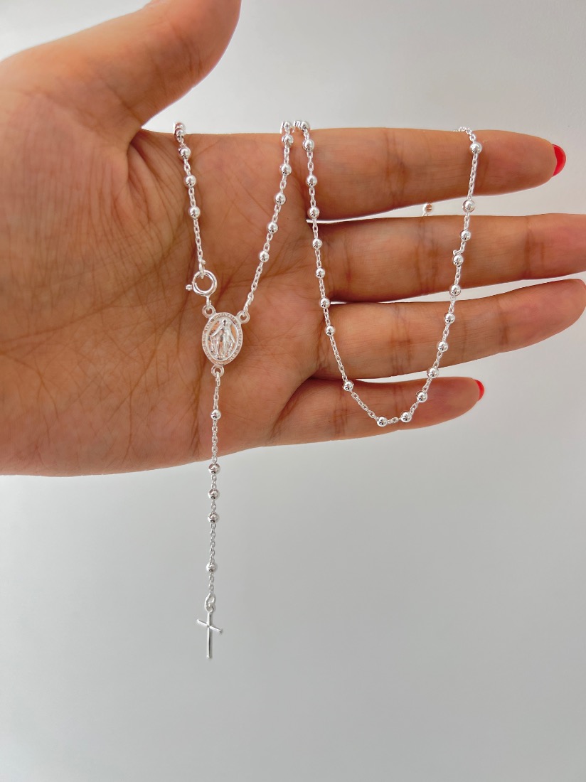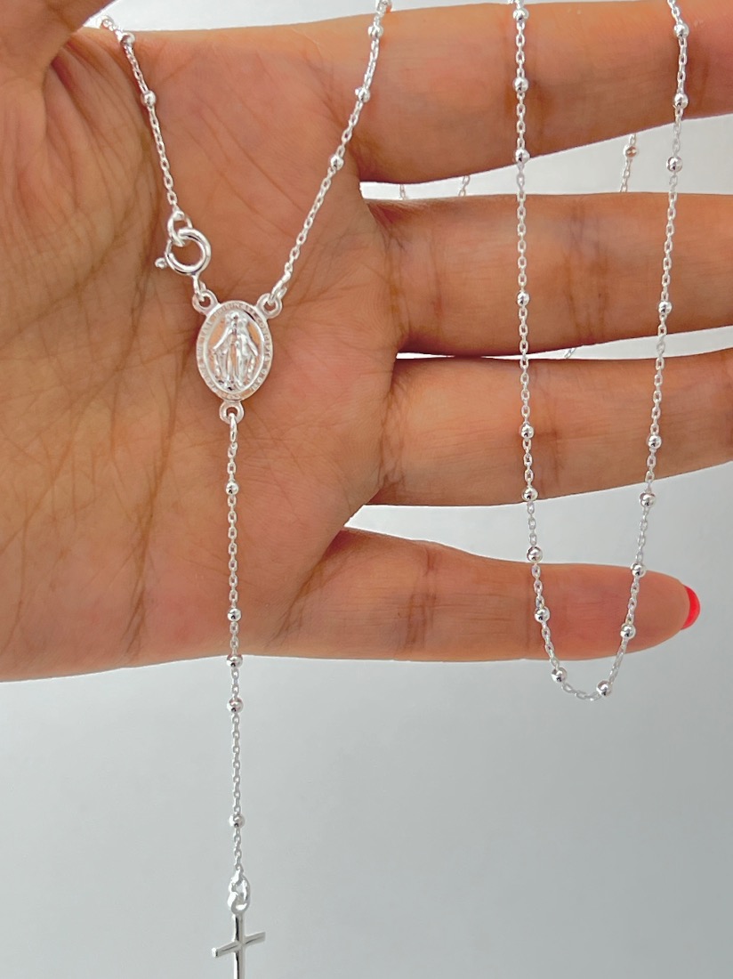 ROSARIO VIRGEN DEL MILAGRO BOLITAS DE 2MM MEDIDA 55CM PLATA 925