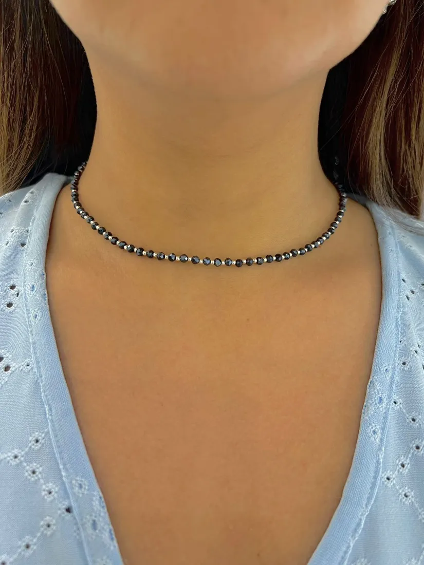 CHOKER CRISTAL CHECO AZULADO PLATA 925