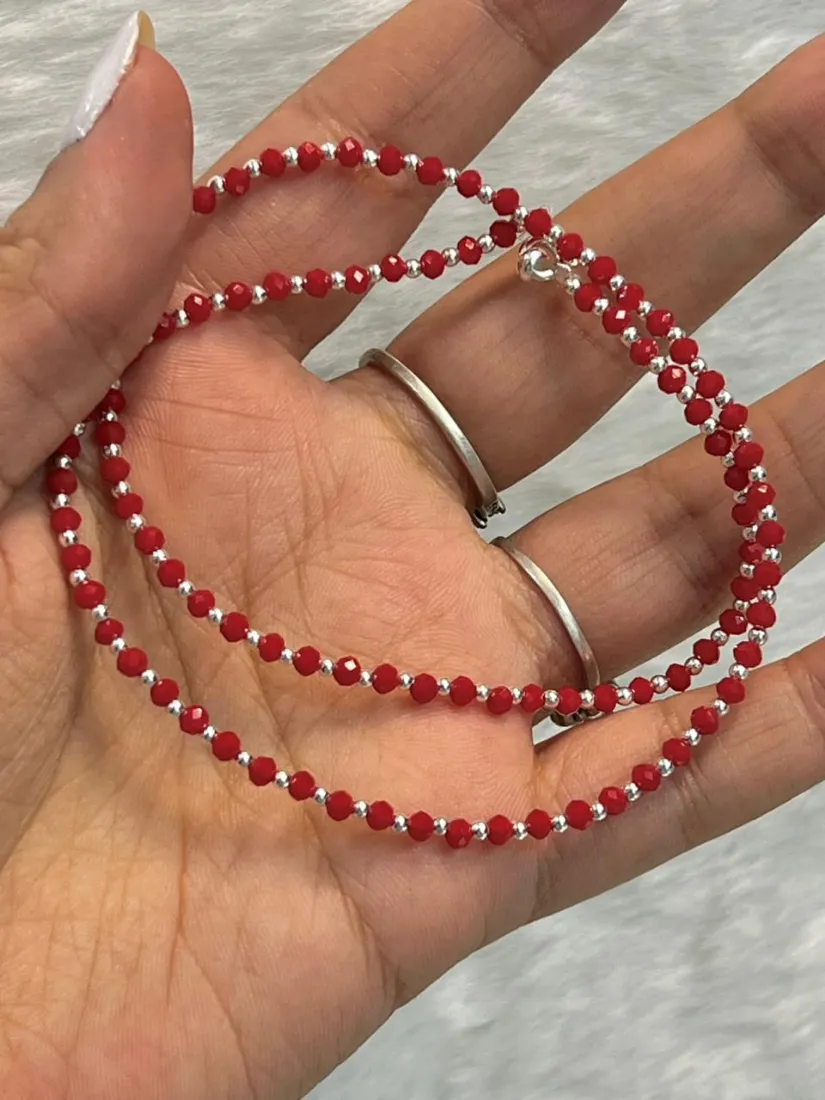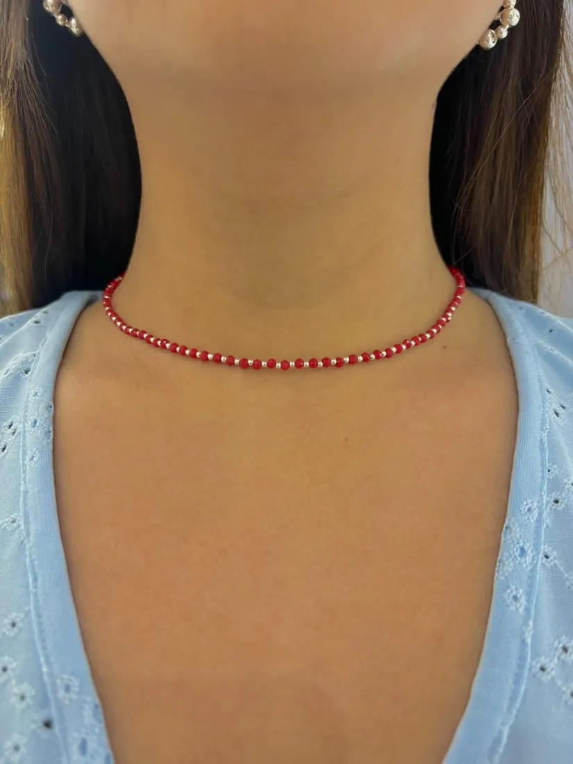 CHOKER C/CRISTAL CHECO ROJO PLATA 925