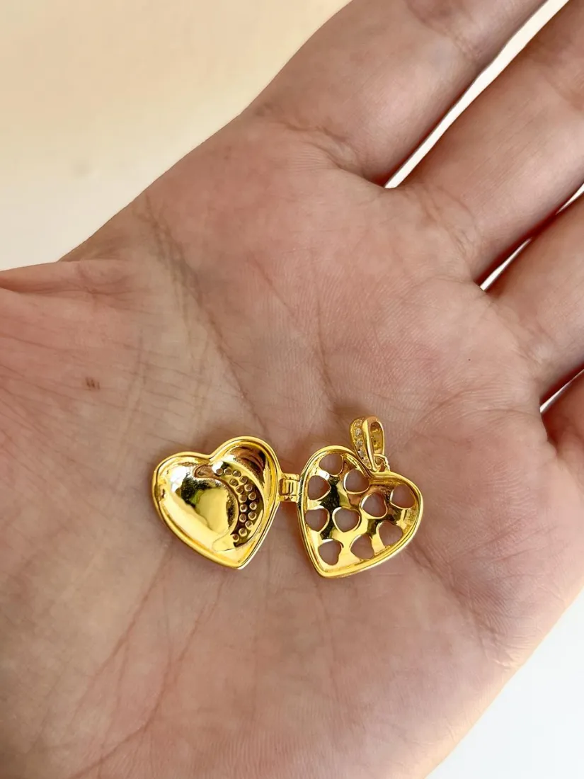 DIJE RELICARIO CORAZON C/MEDIA LUNA PLATA 925 GOLD