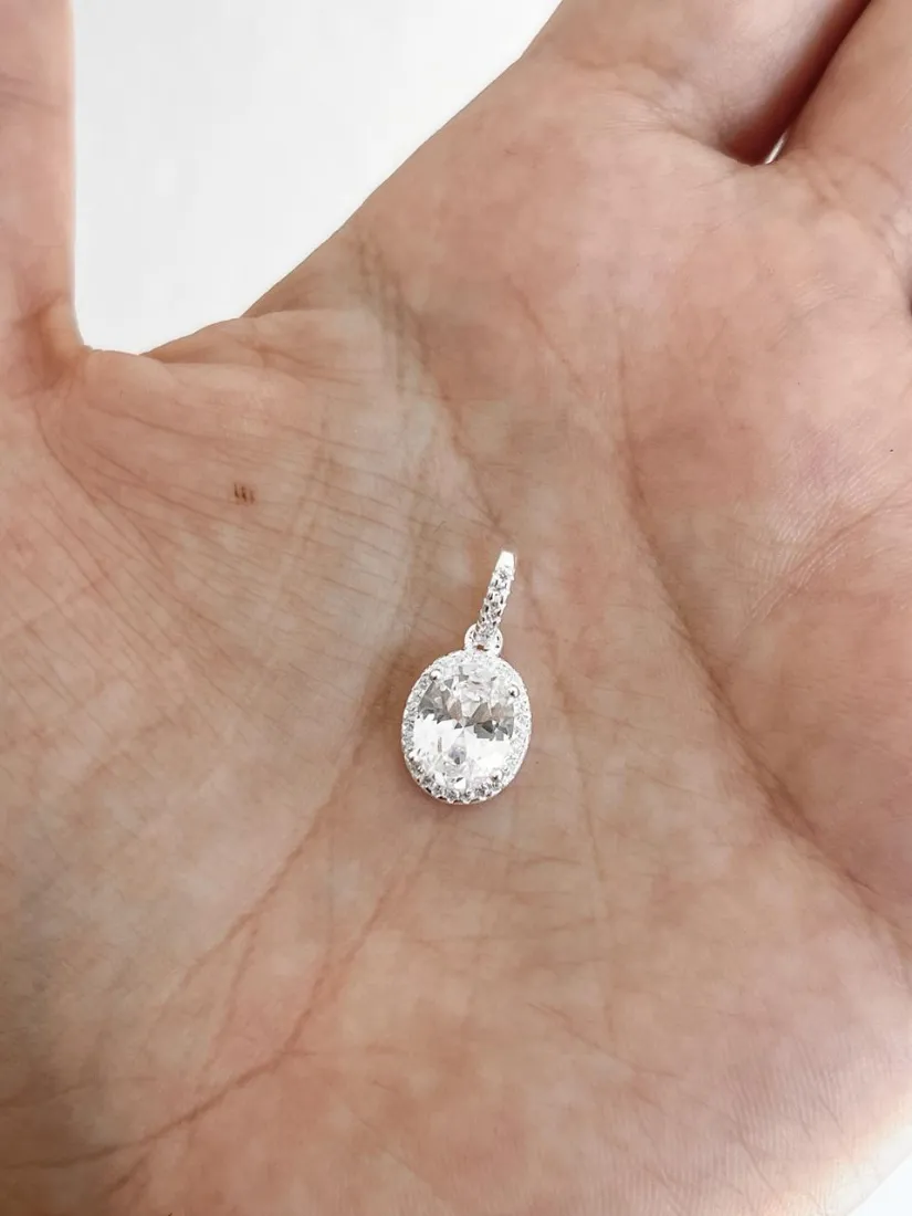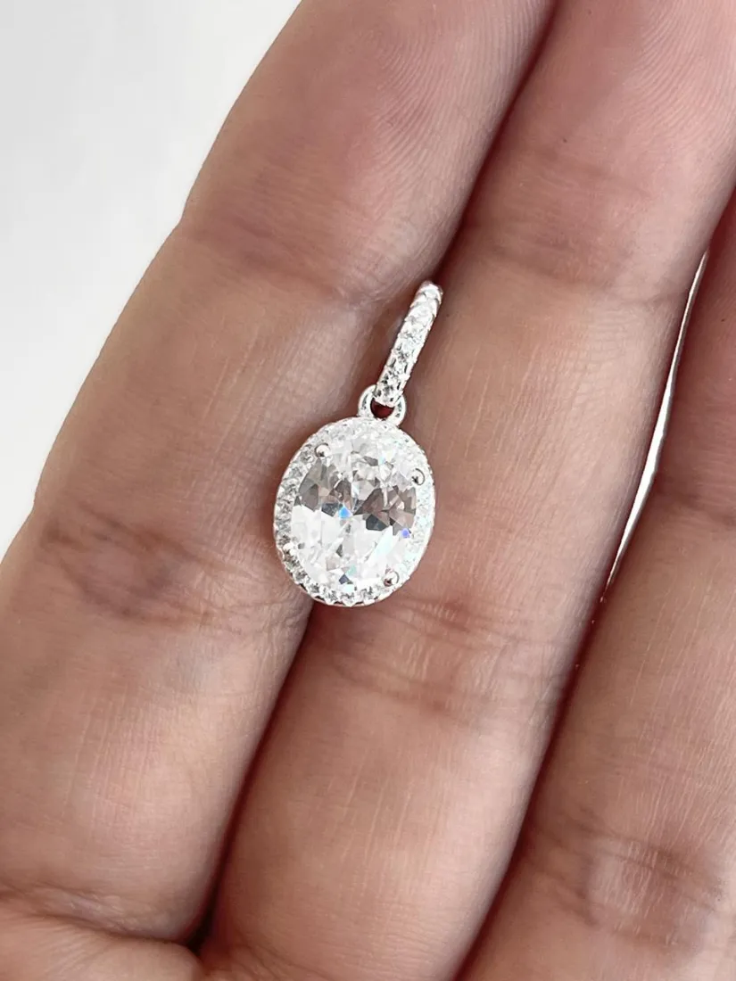 DIJE OVAL ZIRCON BLANCO PLATA 925 ITALY MED 9MM X10MM