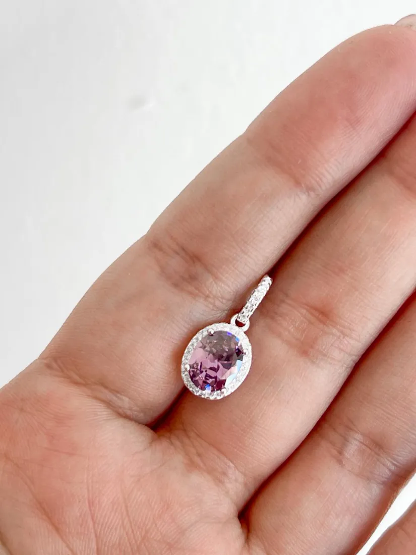 DIJE OVAL ZIRCON LILA AMATISTA PLATA 925 ITALY MED 9MM X10MM