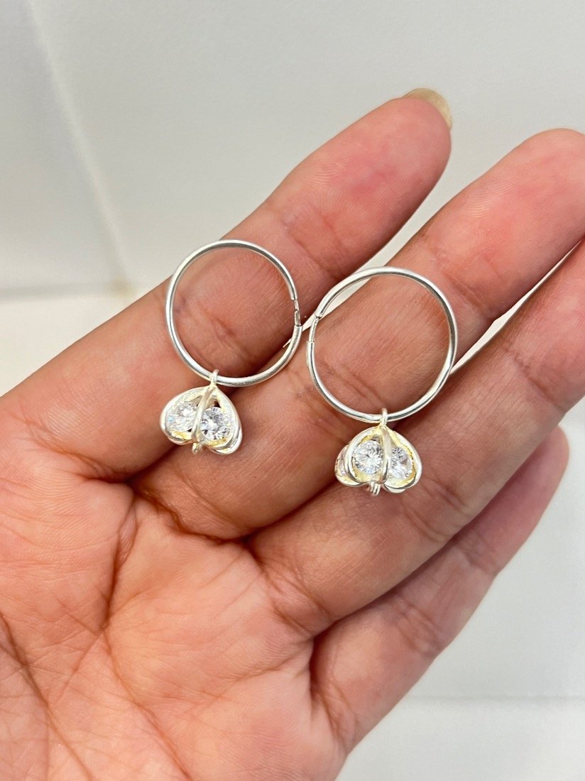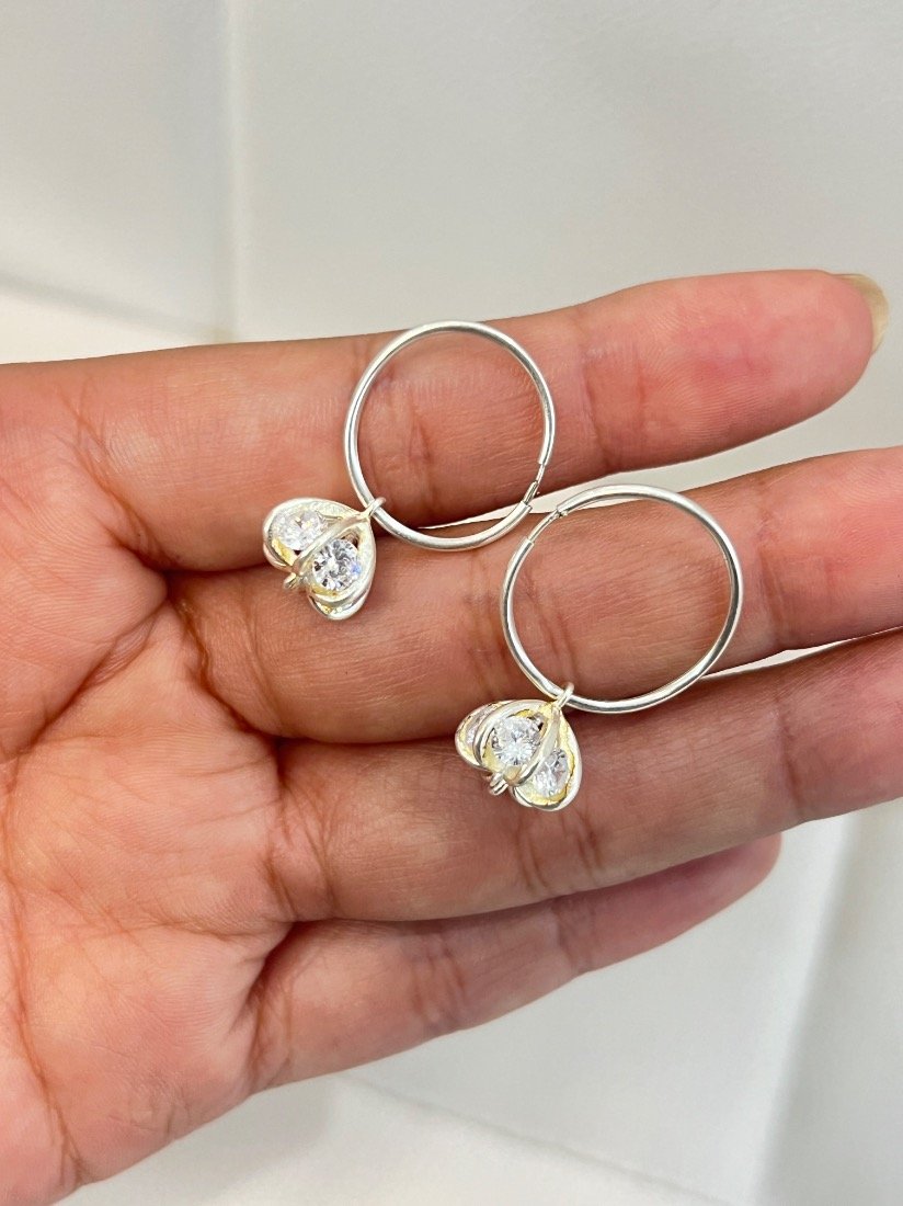 AROS ARGOLLA DE 10MM C/DIJE CANASTITAS C/CRISTAL PLATA 925