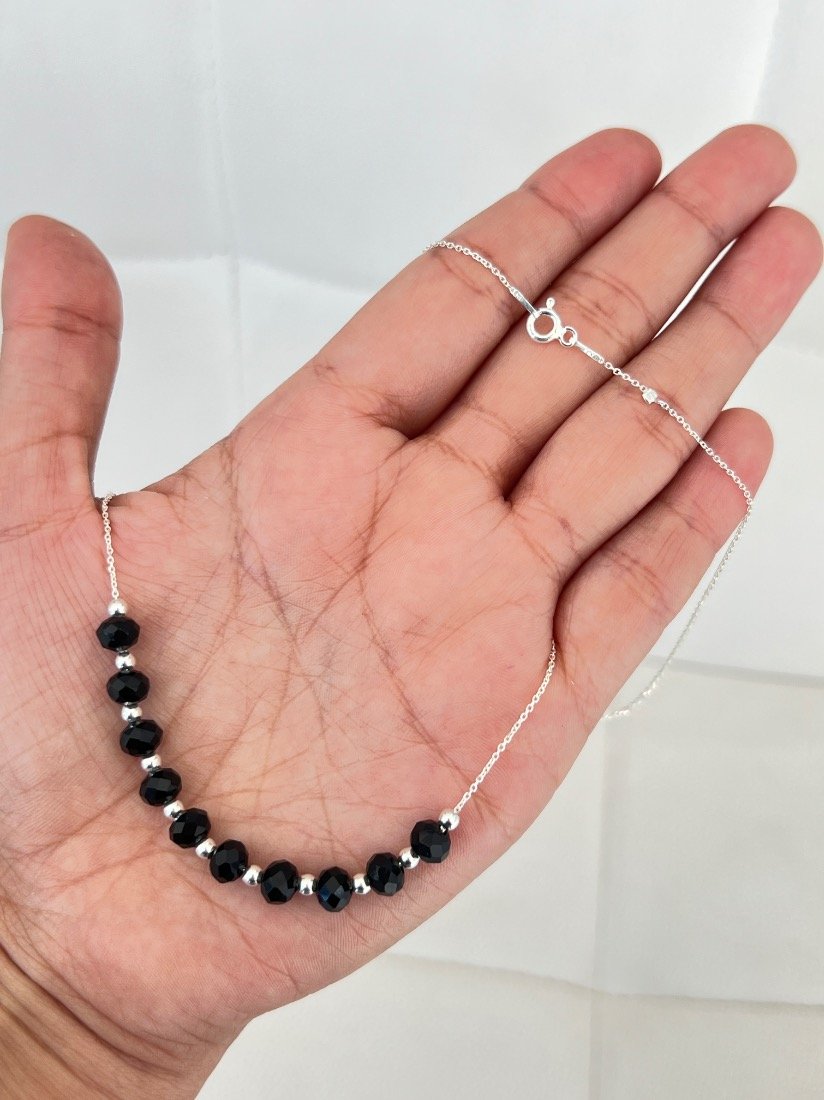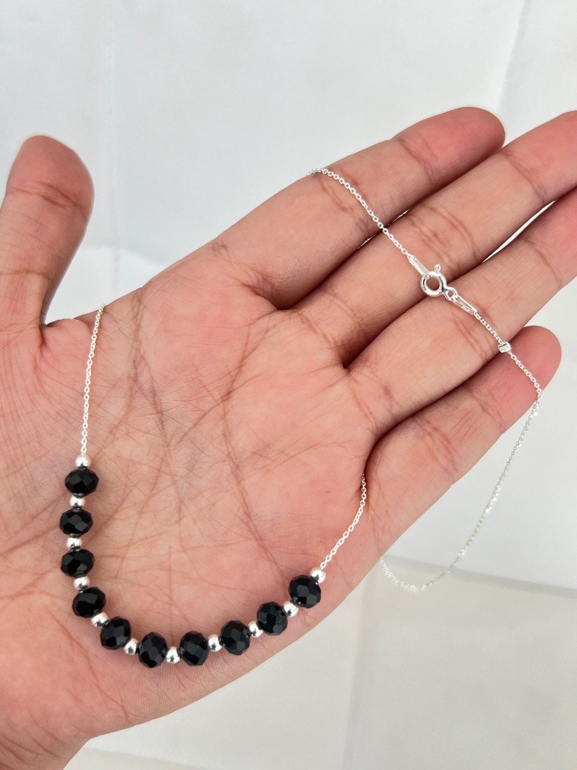 CADENA ESPEJITO C/CRISTAL CHECO NEGRO Y BOLITAS DE PLATA 925