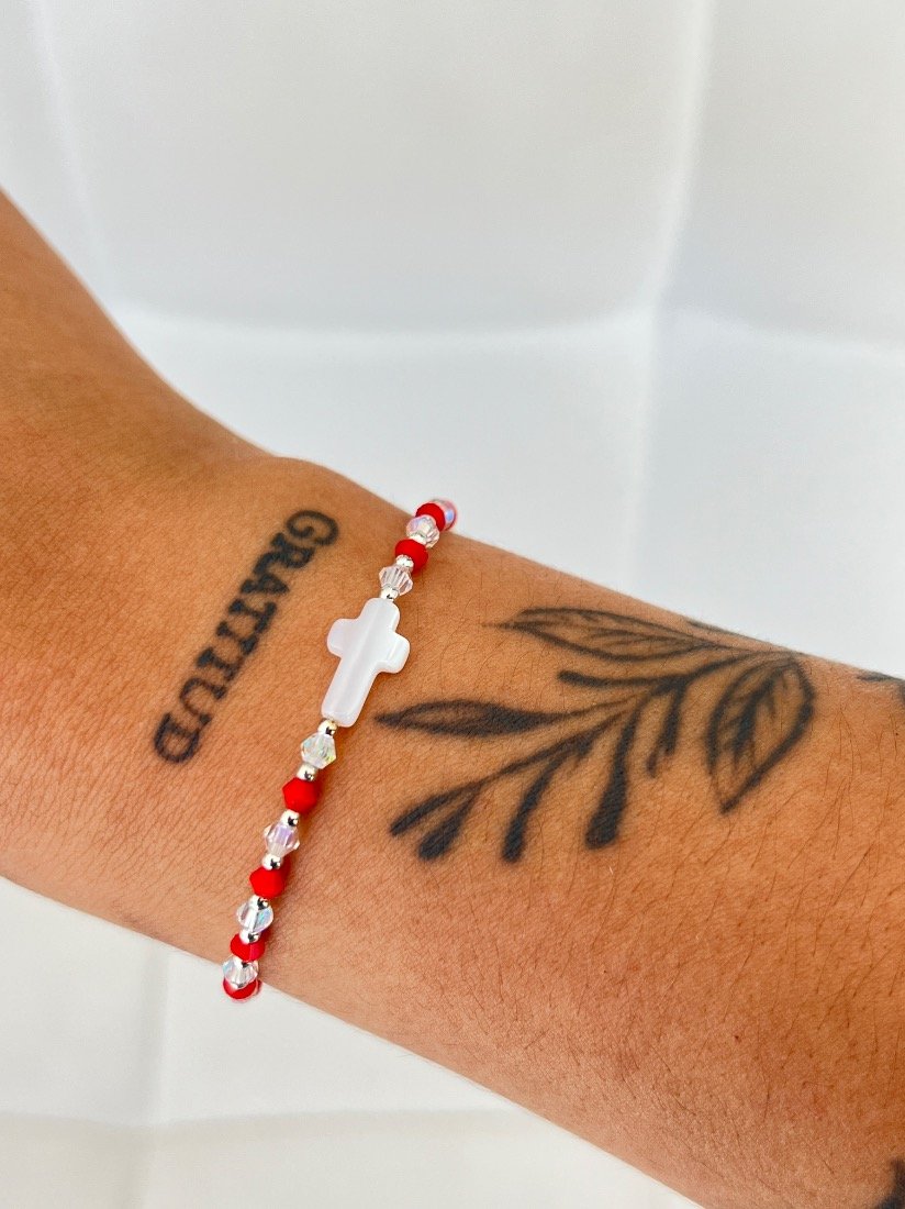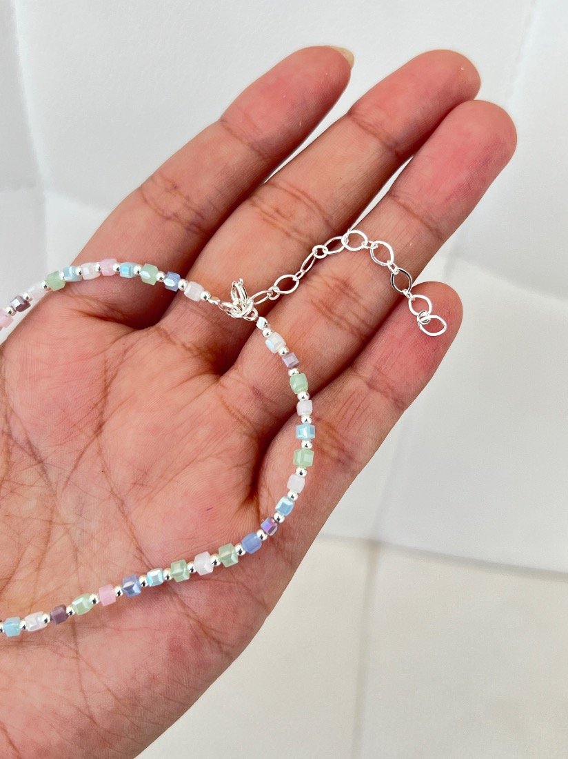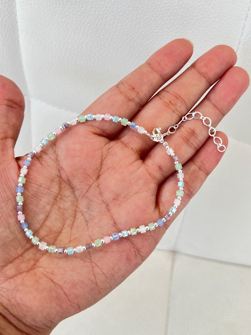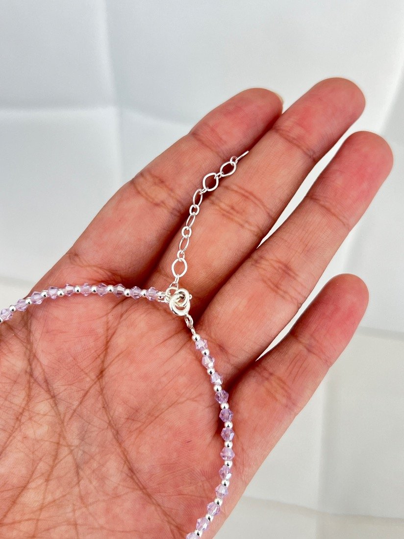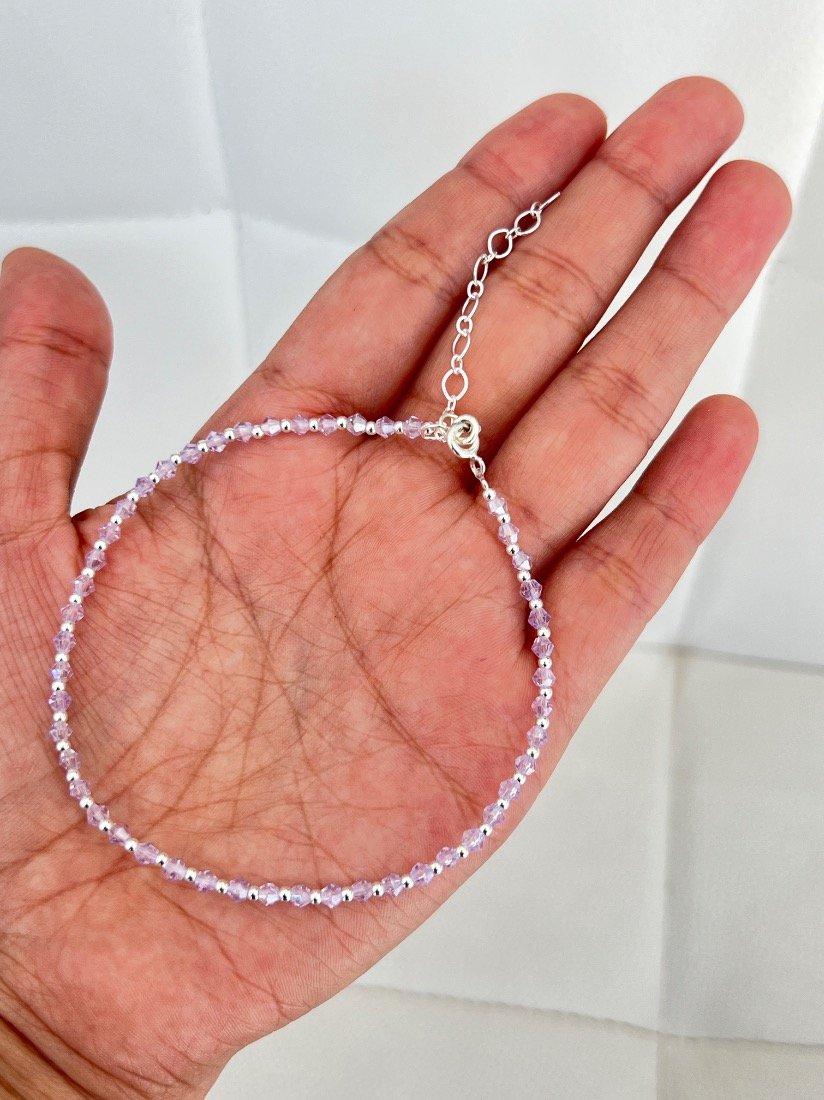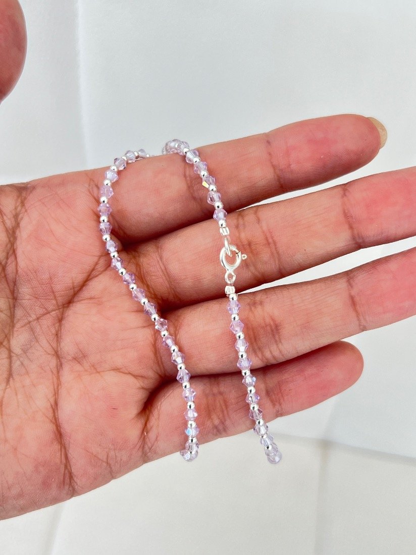 PULSERA ELAZTIZADA C/CRISTAL CHECO Y BOLITAS DE PLATA 925