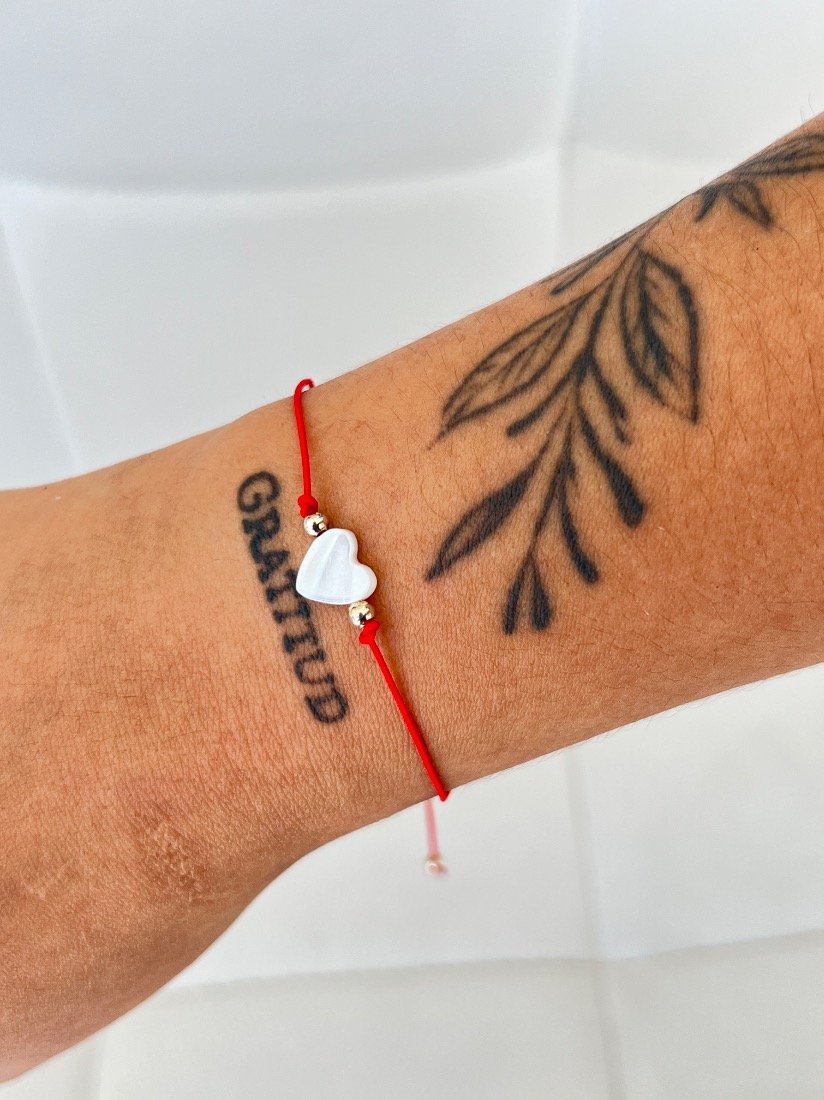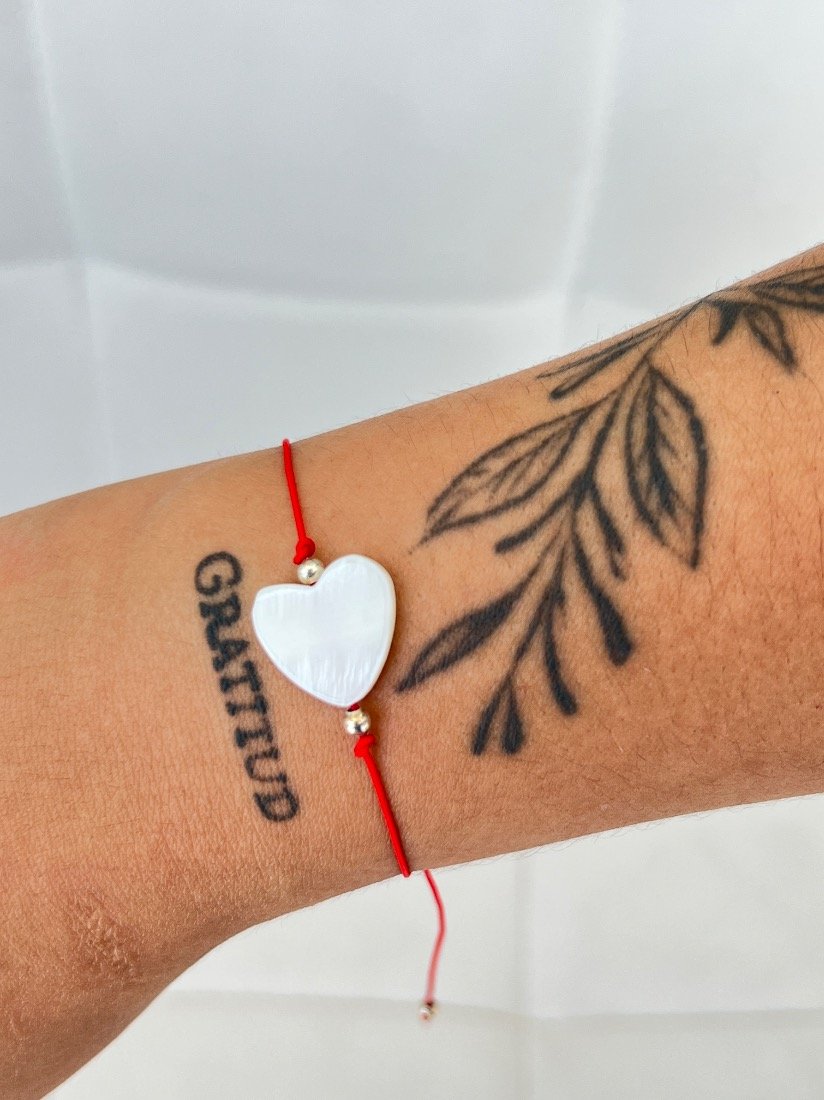 PULSERA HIJO CHINO C/BOLITA DE PLATA Y CORAZON DE NACAR GRANDE