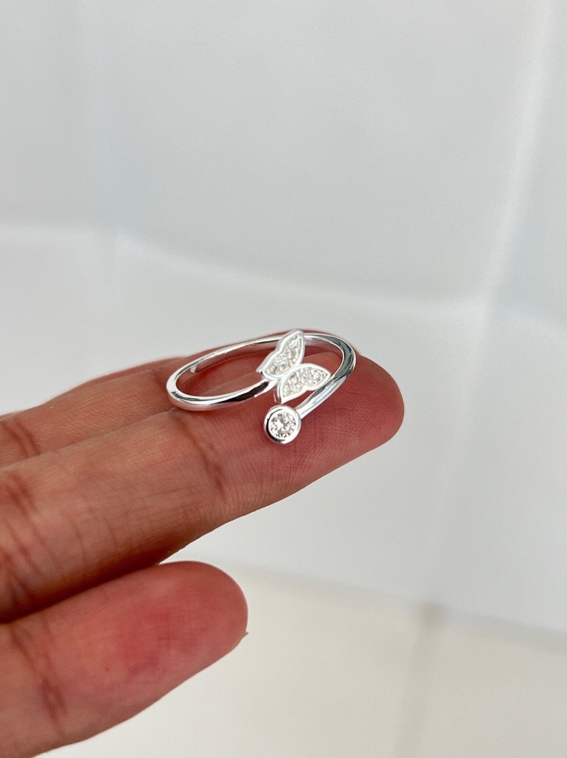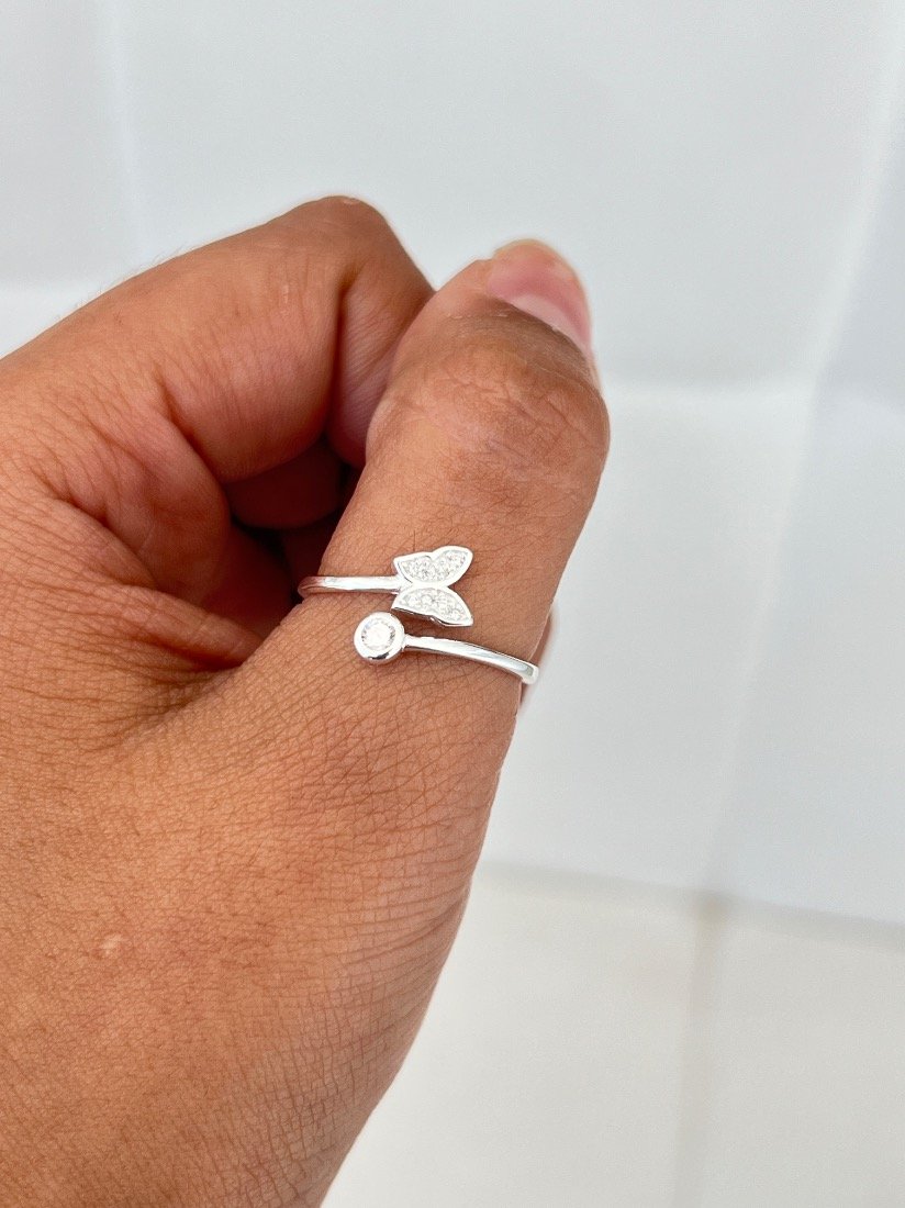ANILLO REGULABLE MARIPOSA C/MICROPAVE PLATA 925