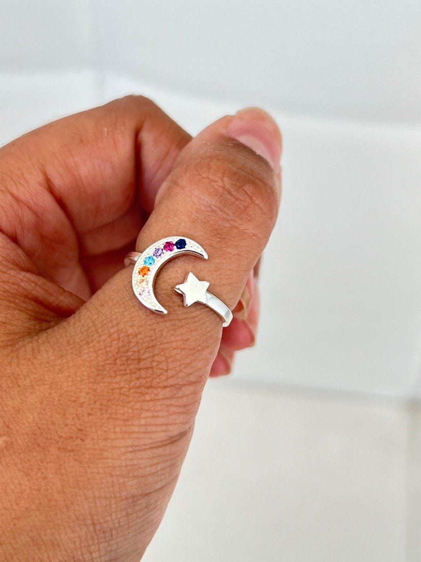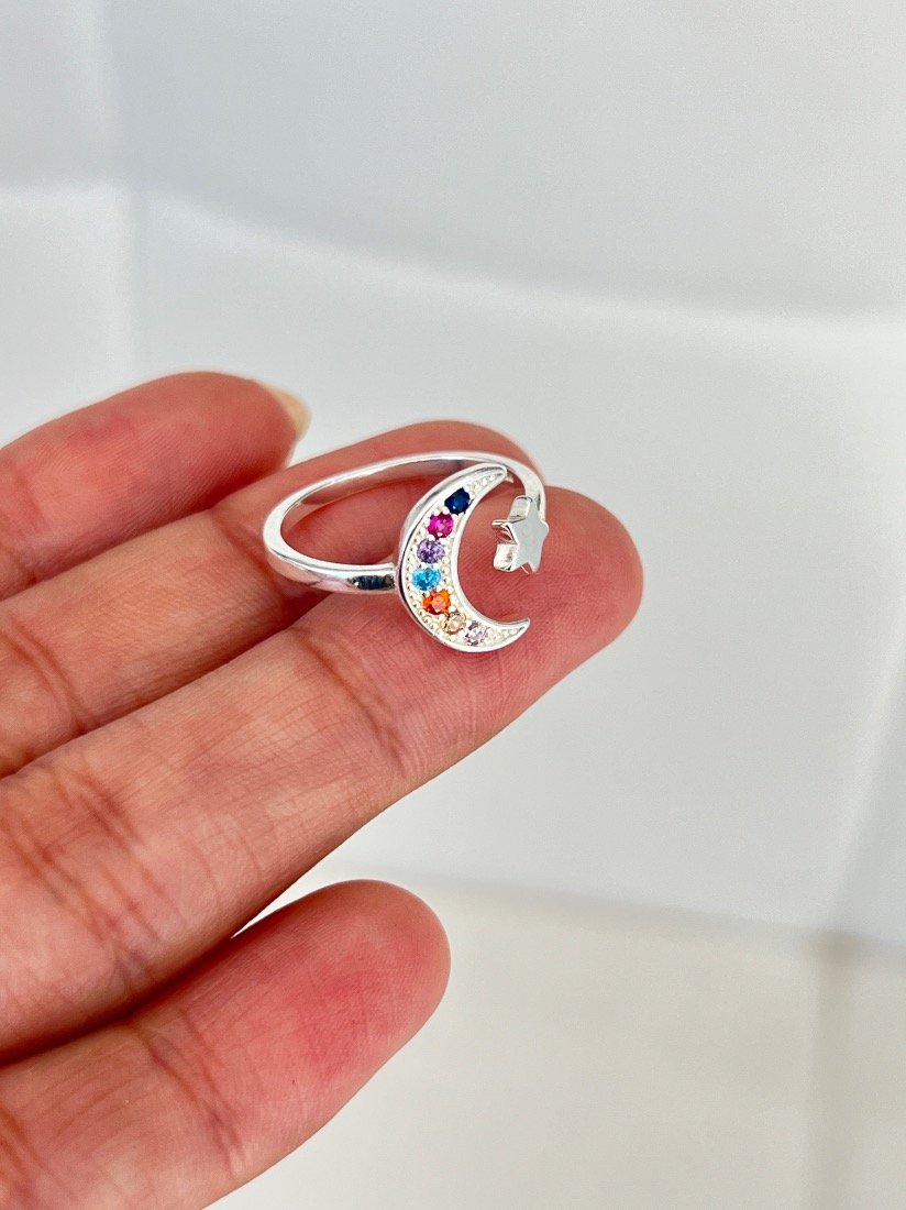ANILLO LUNAS ESTRELLA REGULABLE PLATA 925