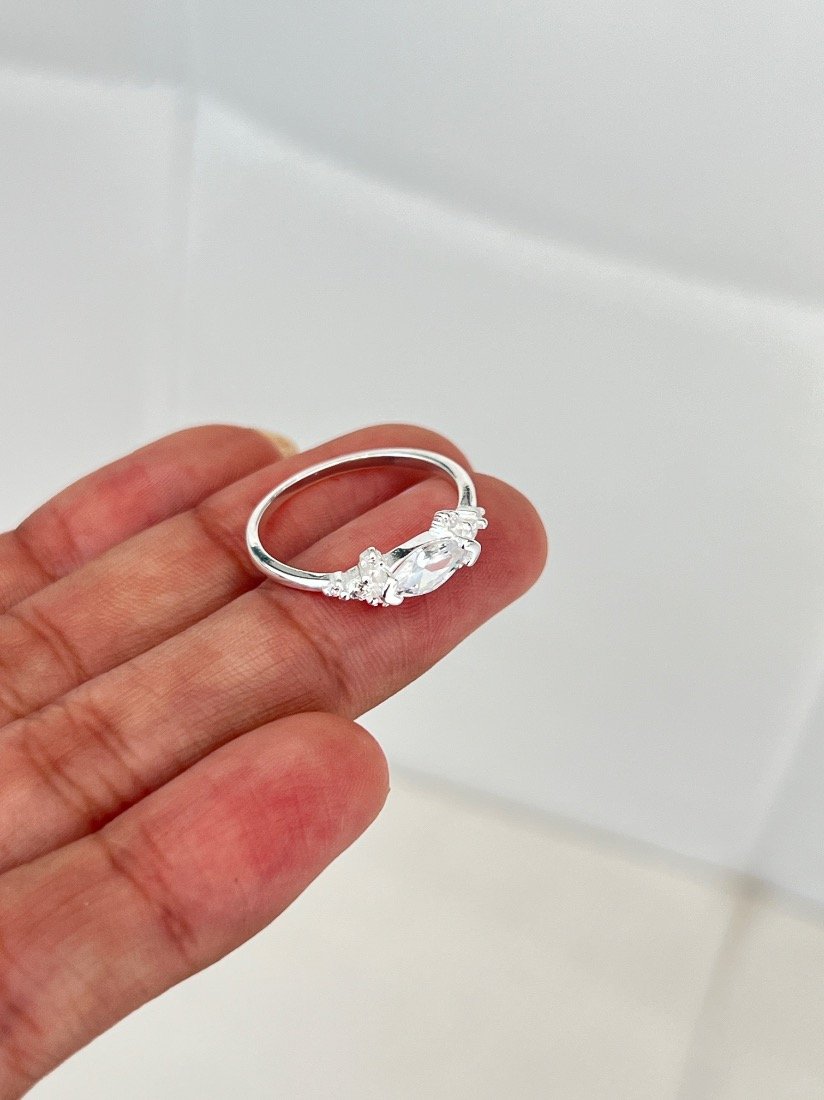 ANILLO IRREGULAR C/ZIRCON Y MICROPAVE PLATA 925