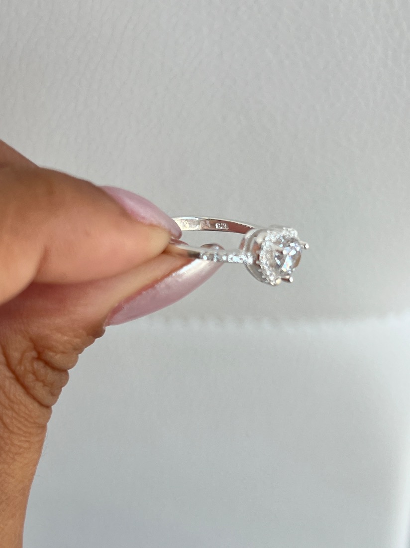 ANILLO CINTILLO C/ZIRCON CORAZON Y MICROPAVE PLATA 925 MED16/17/18