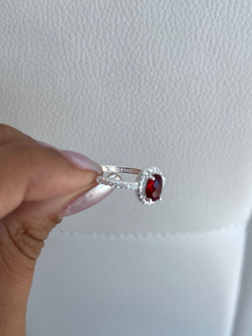 ANILLO OVAL ROJO C/ZIRCON Y MICROPAVE PLATA 925 MED 17/18/19