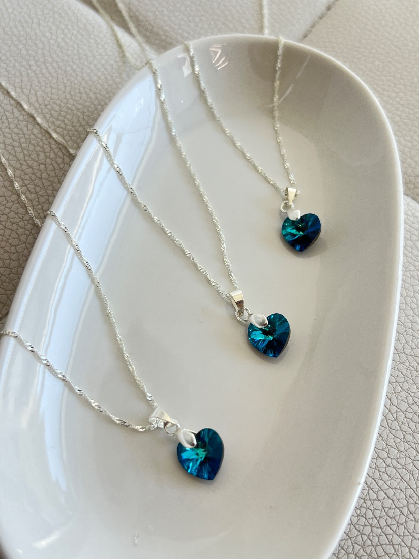 CONJUNTO SWAROVSKI CADENA SINGAPUR DE 45 CM CORAZON VITRAL 10MM AZUL MARIN