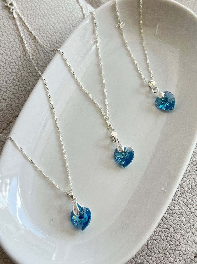 CONJUNTO SWAROVSKI CADENA SINGAPUR DE 45 CM CORAZON VITRAL 10MM TURQUESA B