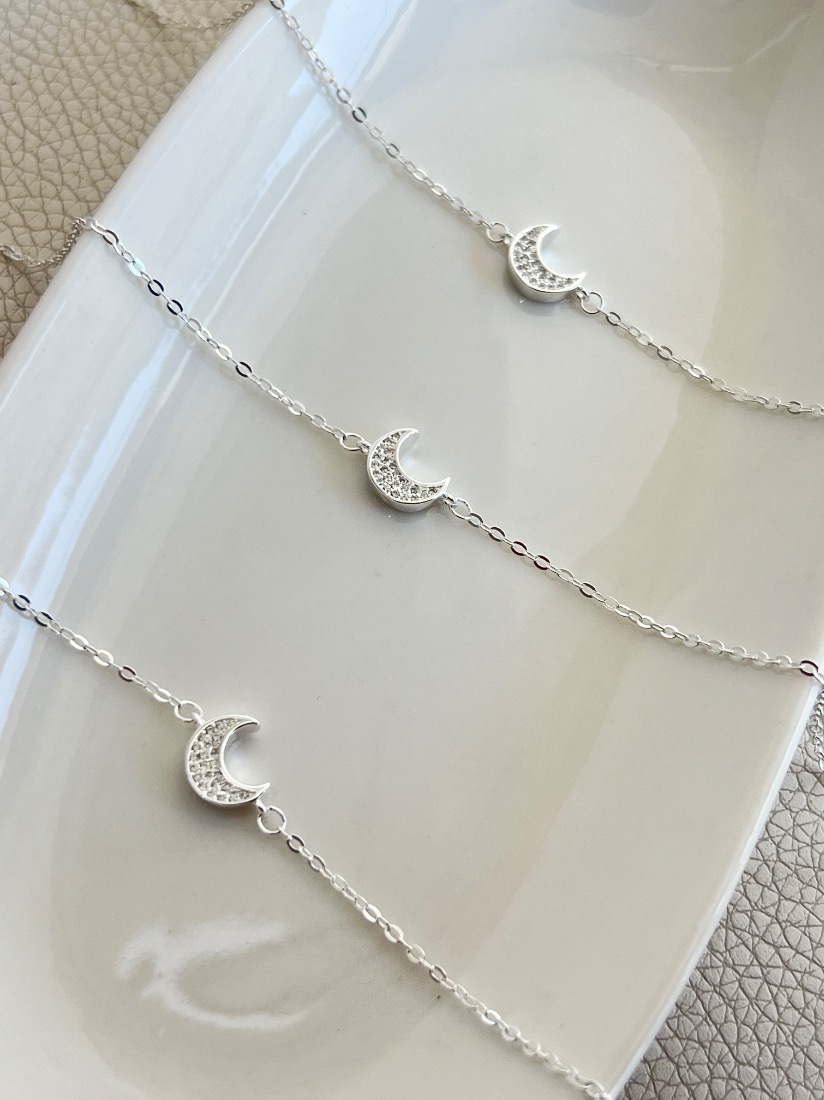 PULSERA ESPEJITO C/DIJE MEDIALUNA C/MICROPAVE PLATA 925 ITALY