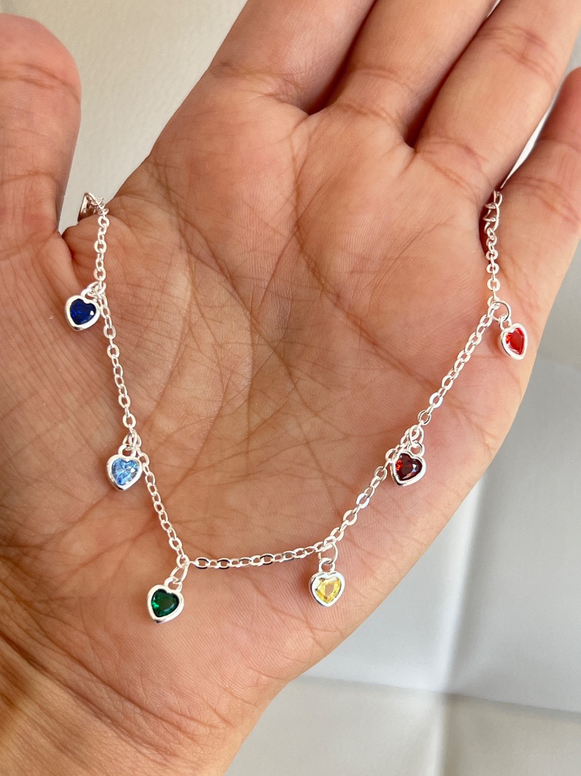 PULSERA FORCETINA C/DIJE CORAZON MULTICOLOT PLATA 925 ITALY MED 17+3