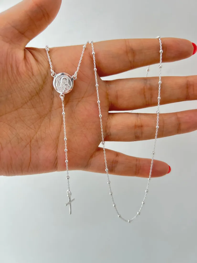 ROSARIO DE SAN BENITO C/BOLITAS DE 2 MM MEDIDA 45CM PLATA 925