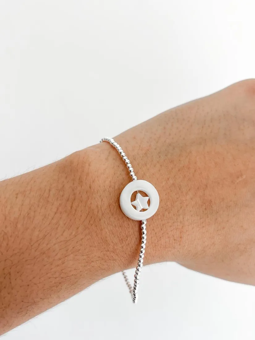 PULSERA BOLITAS C/DIJE ESTRELLA DE NACAR PLATA 925