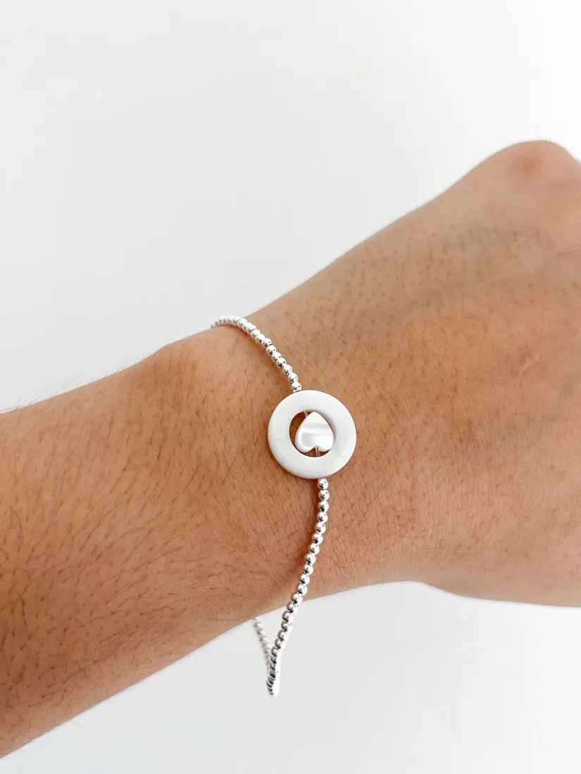 PULSERA BOLITAS C/DIJE CORAZON DE NACAR PLATA 925