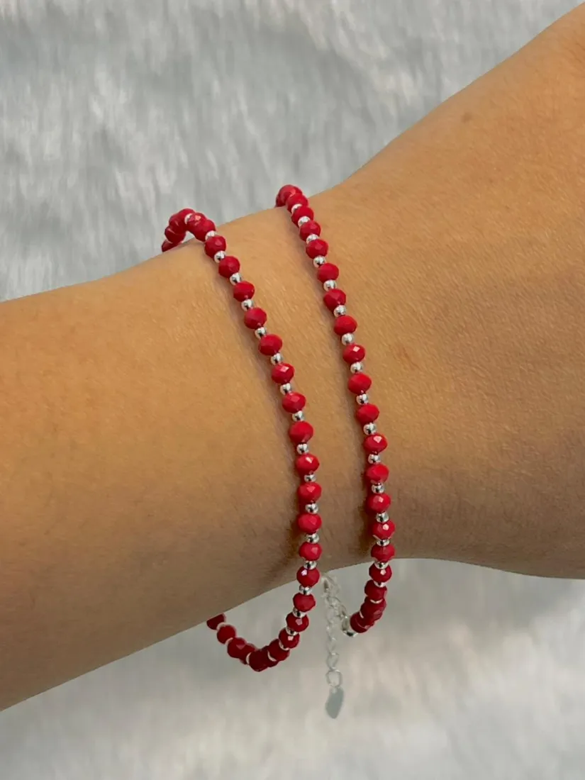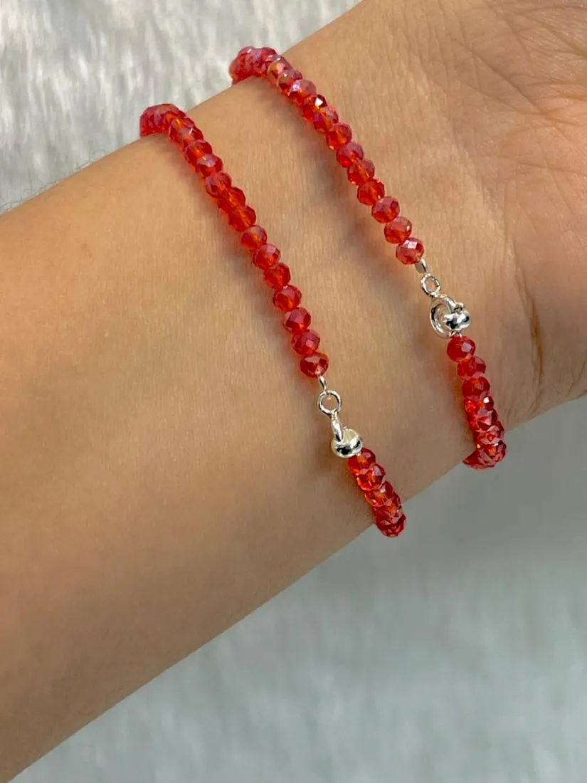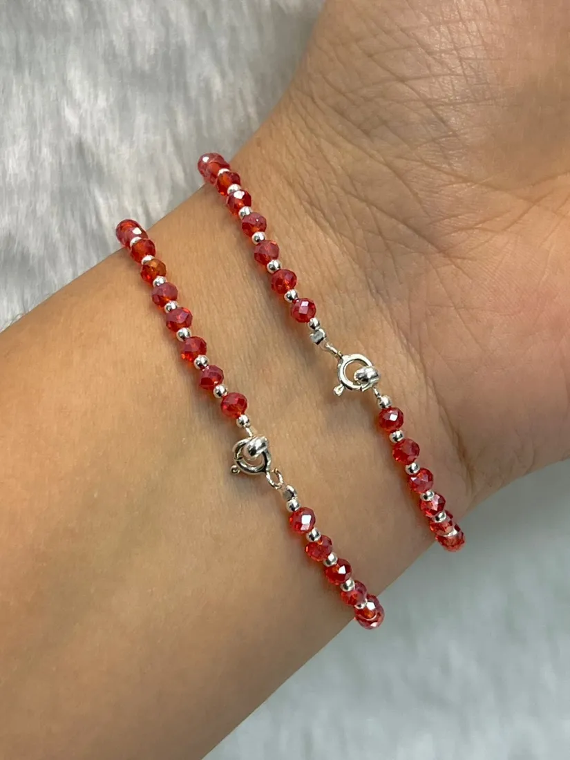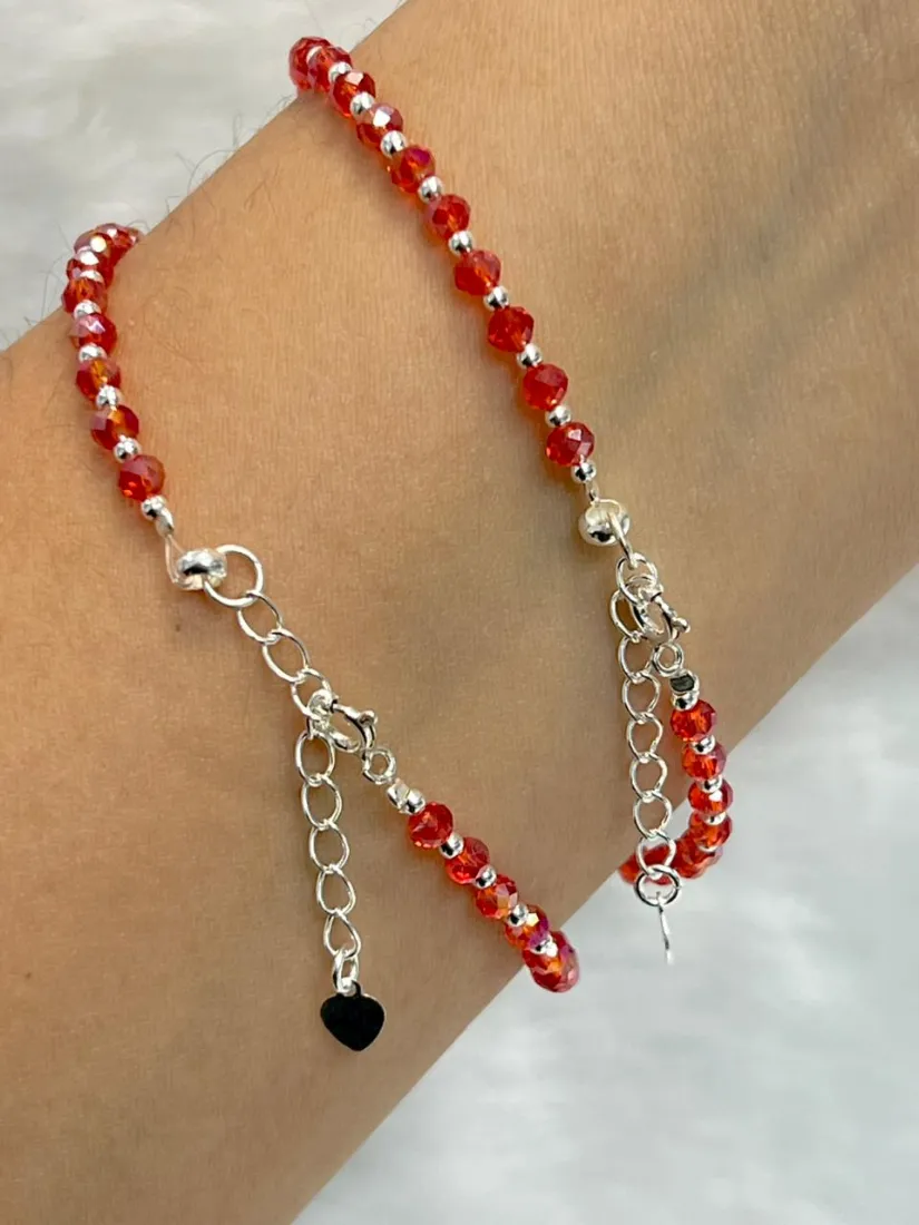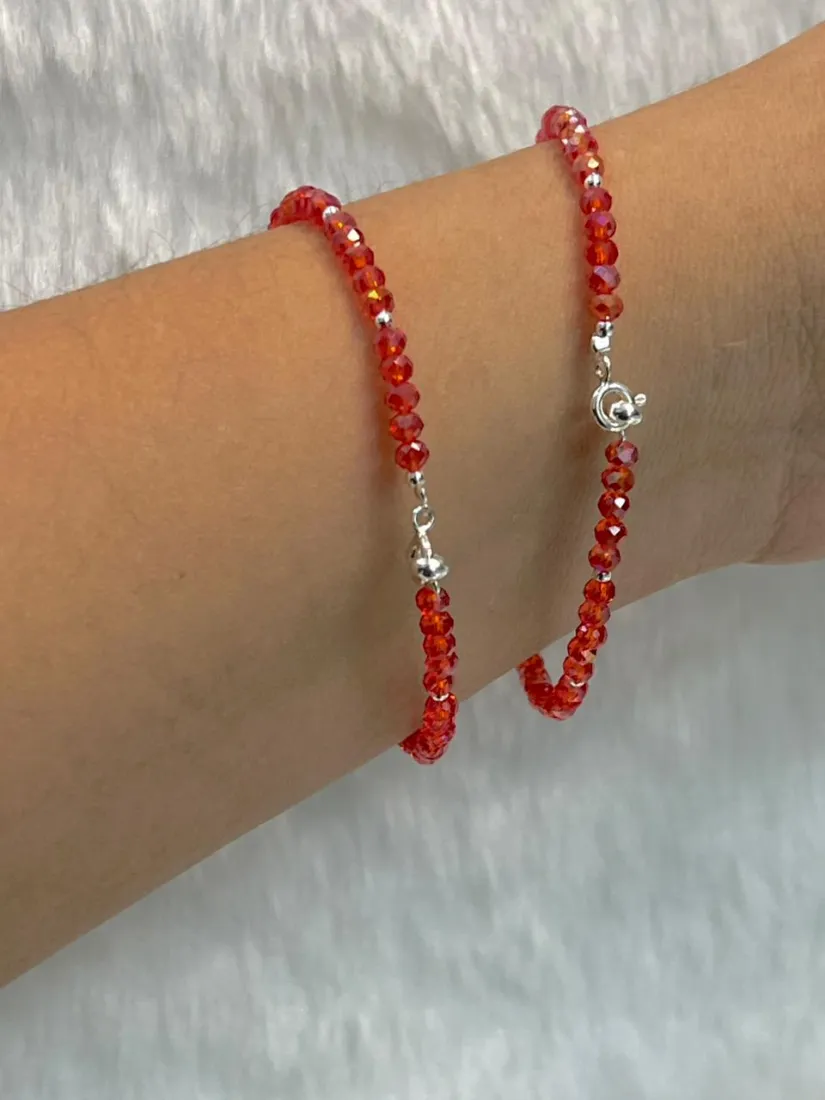 PULSERA/TOBILLERA CRISTAL CHECO ROJO BRILLO PLATA 925