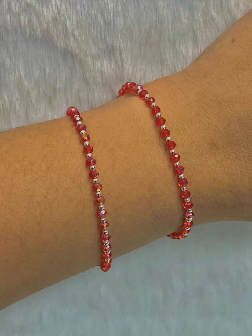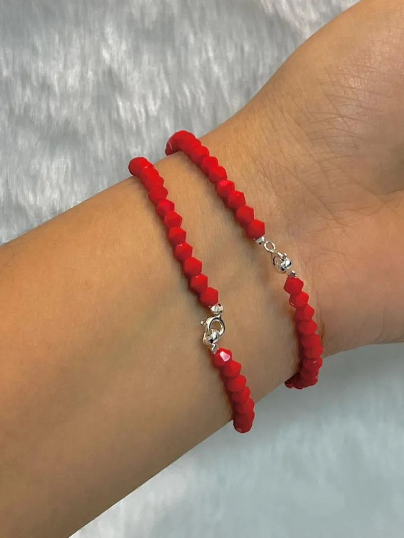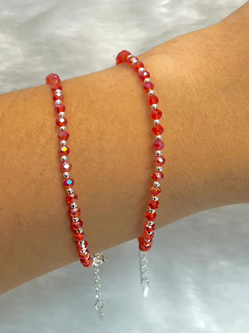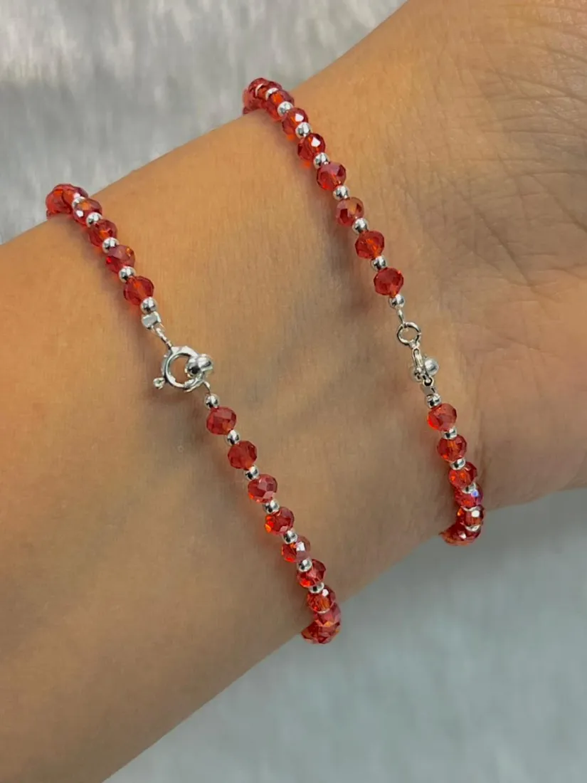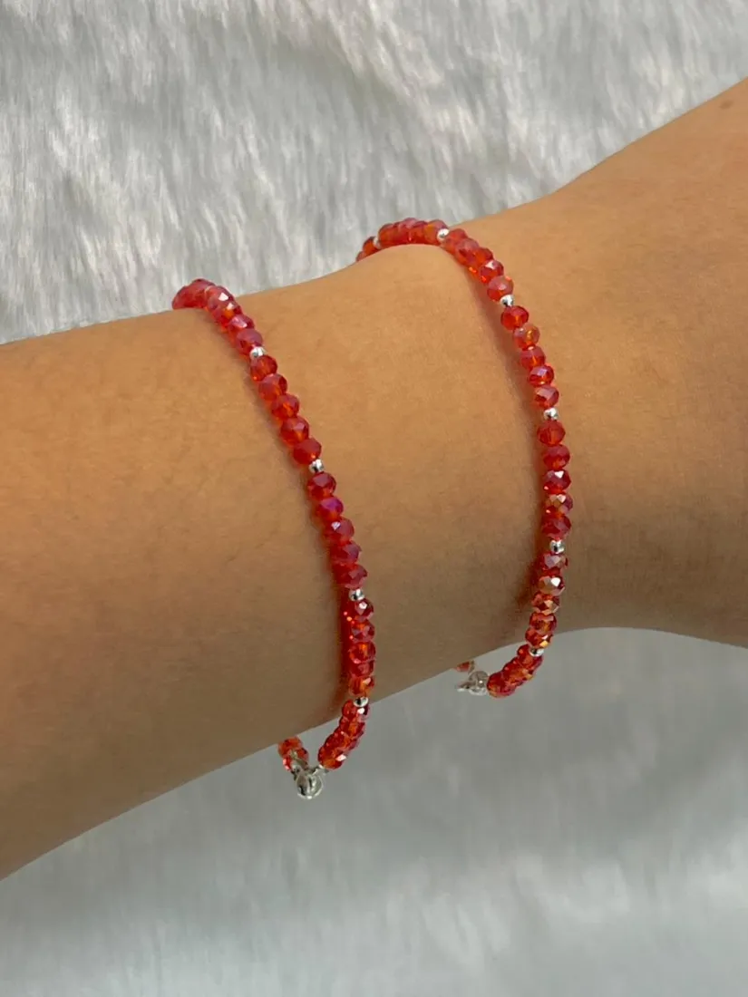 PULSERA/TOBILLERA CRISTAL CHECO ROJO BRILLO PLATA 925