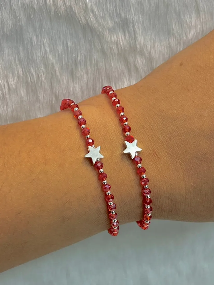 PULSERA CRISTAL CHECO ROJA C/DIJE ESTRELLA PLATA 925 MED