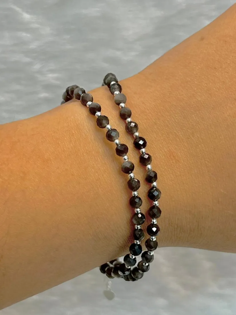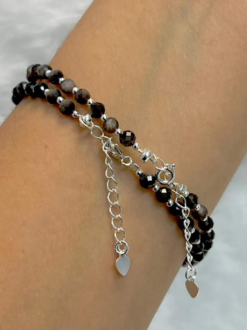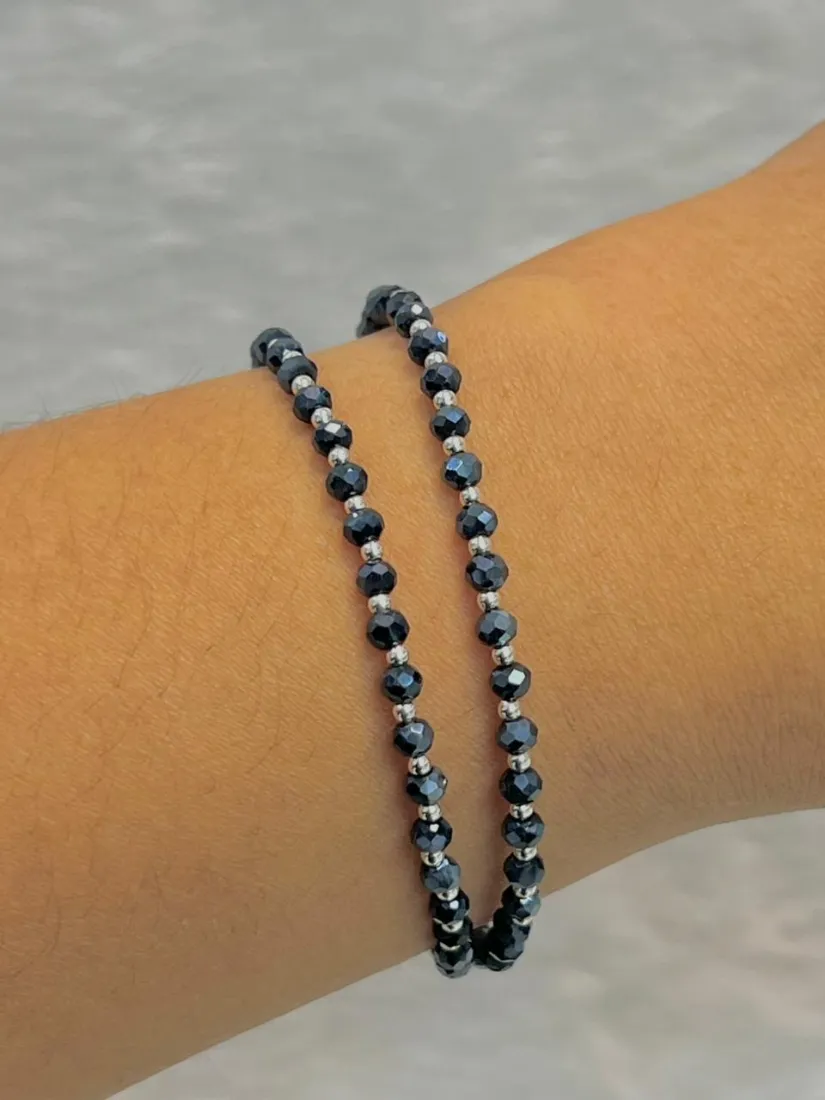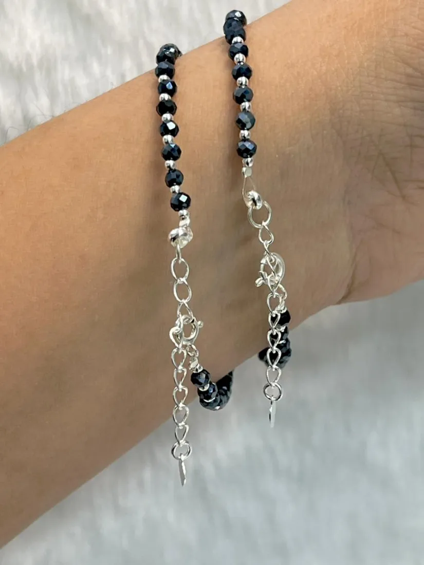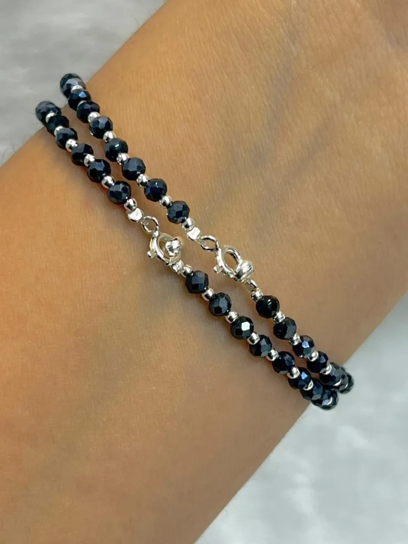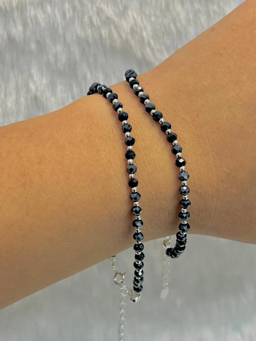 PULSERA/TOBILLERA CRISTAL CHECO NEGRO AZULADO PLATA 925