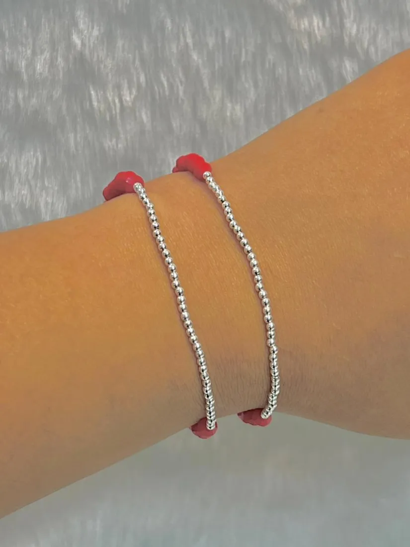 PULSERA CRISTAL CHECO ROJO C/BOLITAS PLATA 925