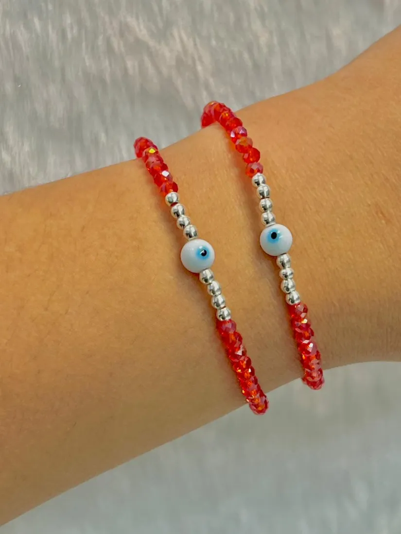 PULSERA CRISTAL CHECO C/DIJE OJO TURCO PLATA 925