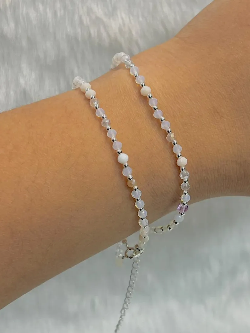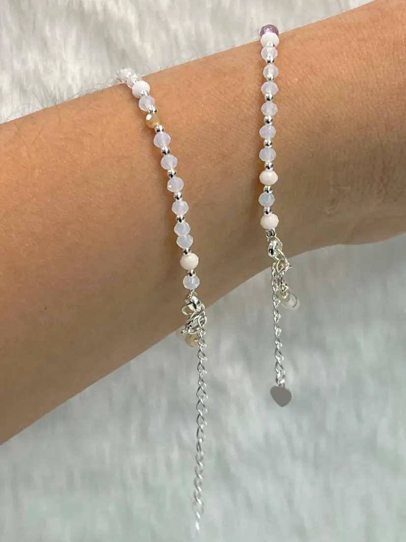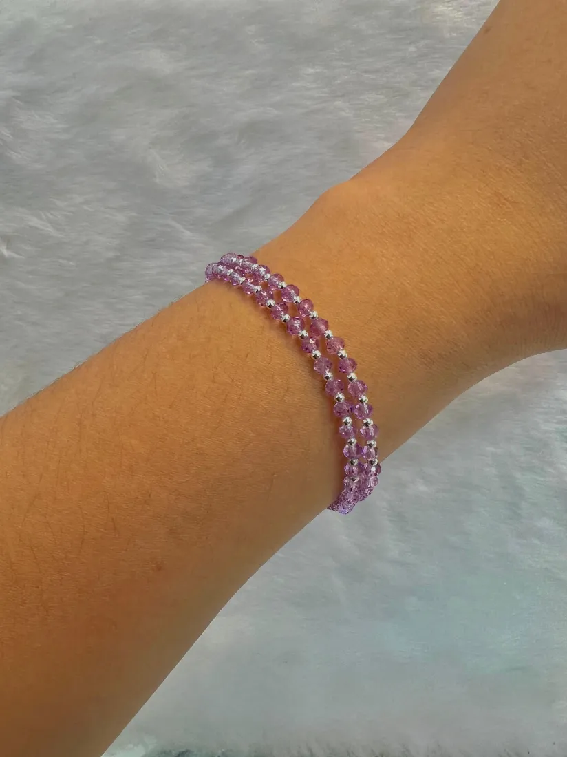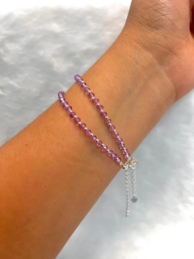 PULSERA/TOBILLERA CRISTAL CHECO LILA PLATA 925