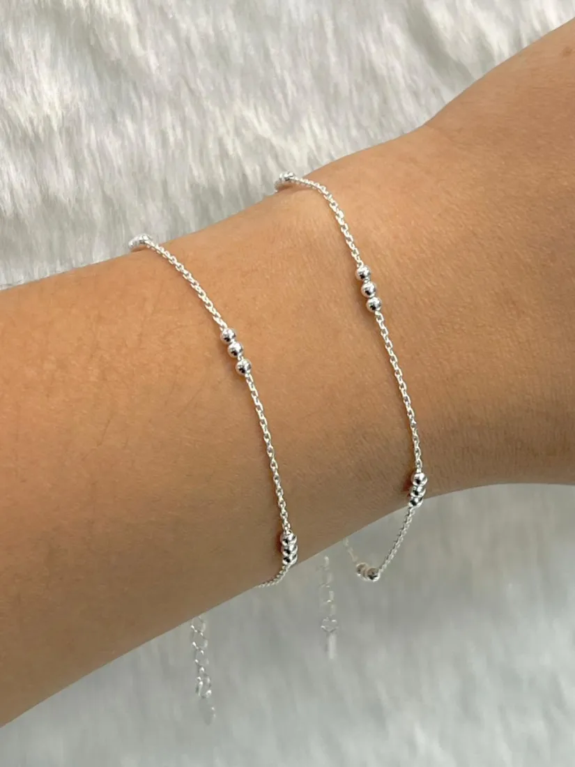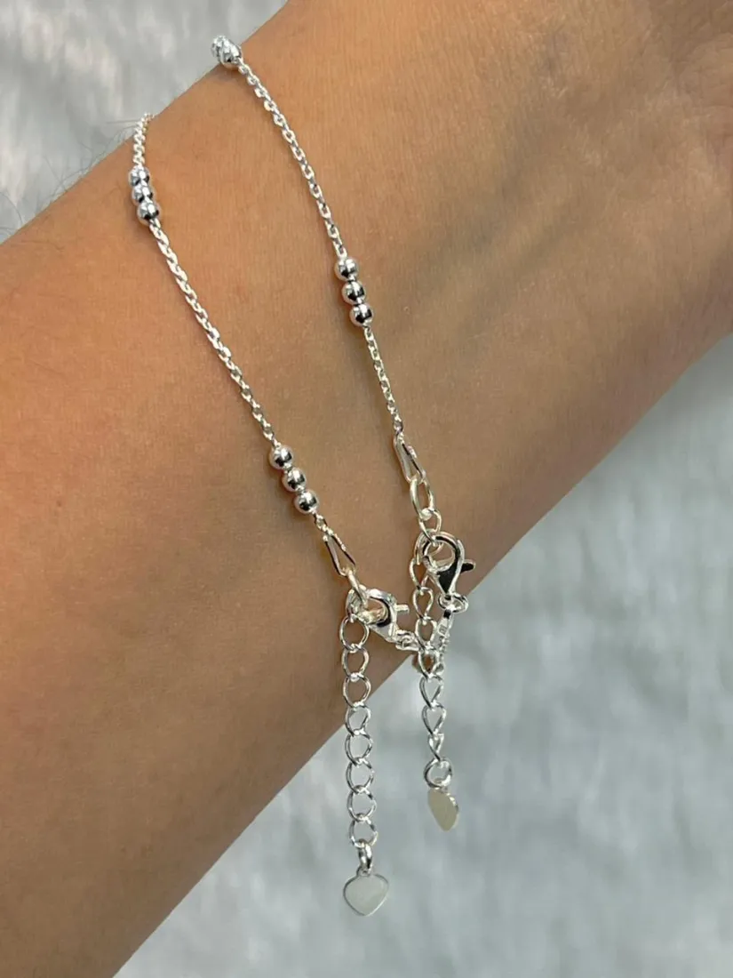 PULSERA ESPEJITO DOBLE C/BOLITAS 4 PUNTOS DE LUZ PLATA 925 ITALY MED 17+3