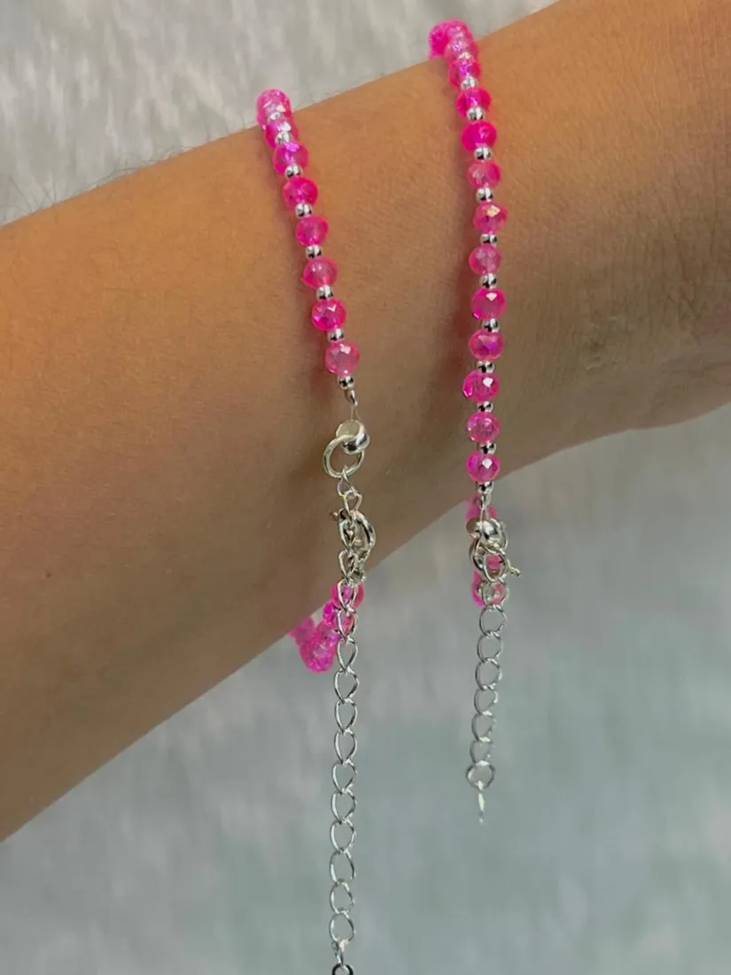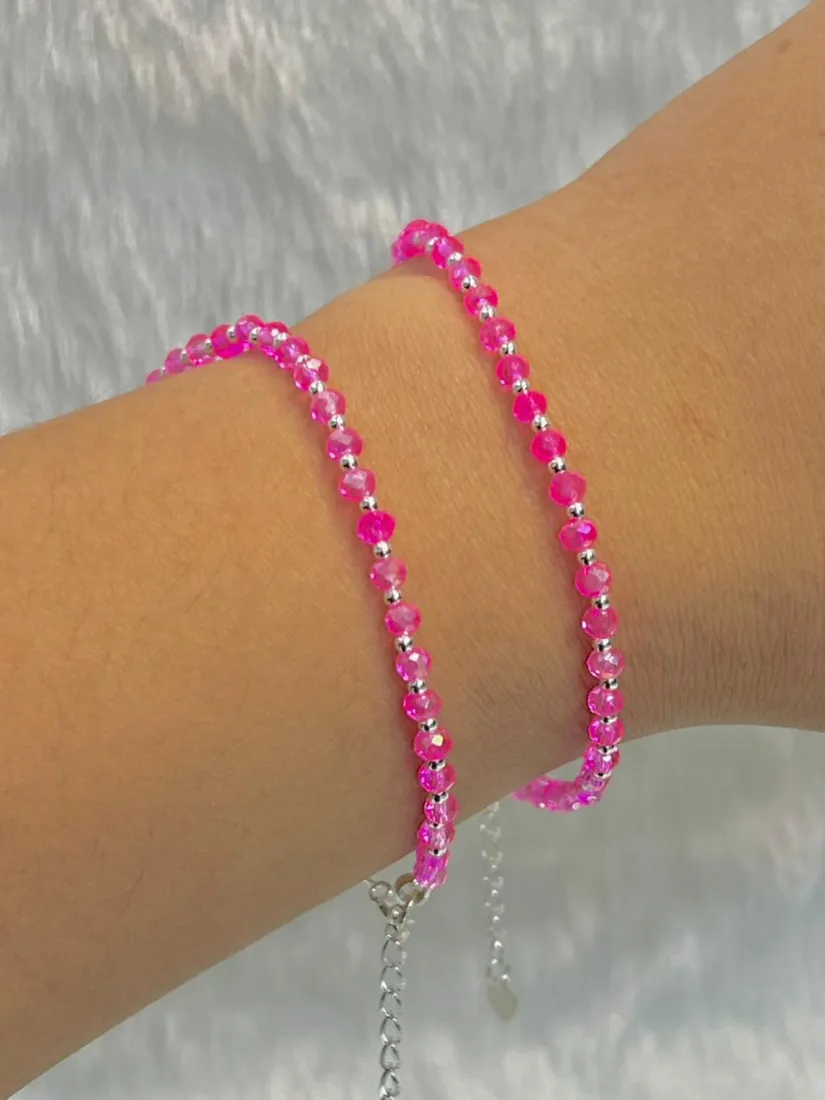 PULSERA/TOBILLERA CRISTAL CHECO ROSA C/BOLITAS PLATA 925