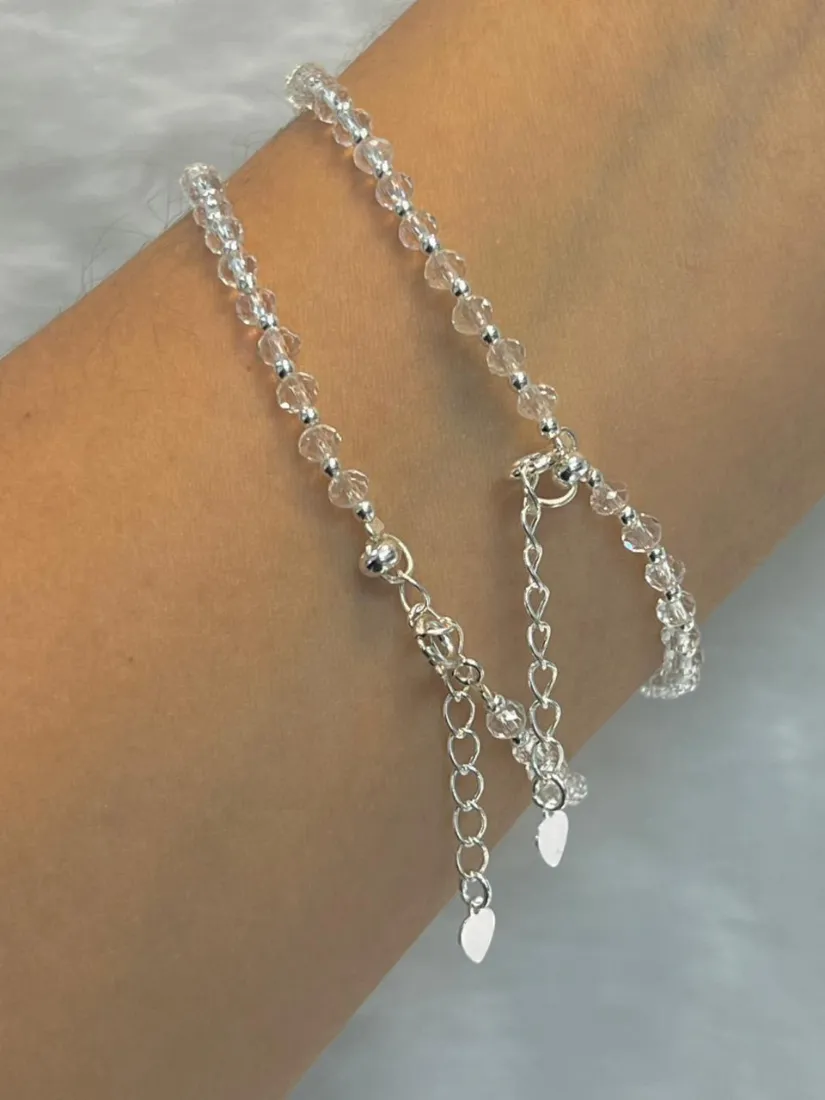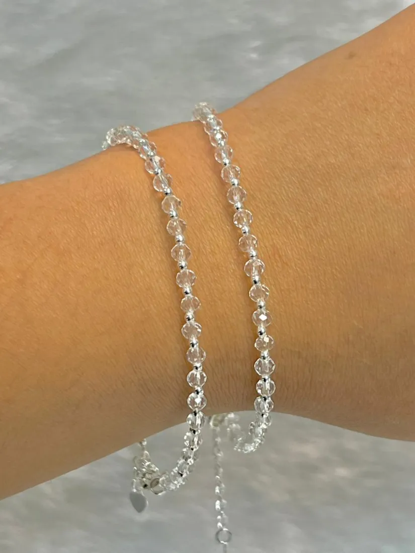 PULSERA/TOBILLERA CRISTAL CHECO BLANCO PLATA 925