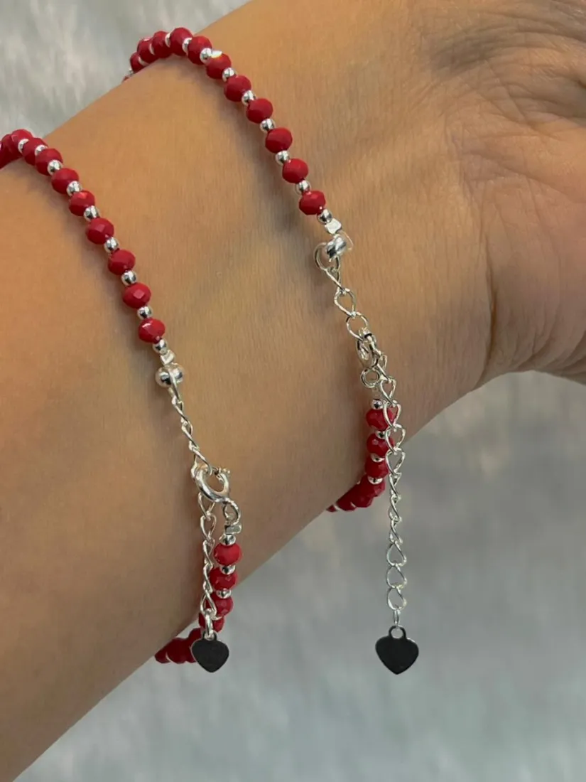 PULSERA/TOBILLERA CRISTAL CHECO ROJO PLATA 925